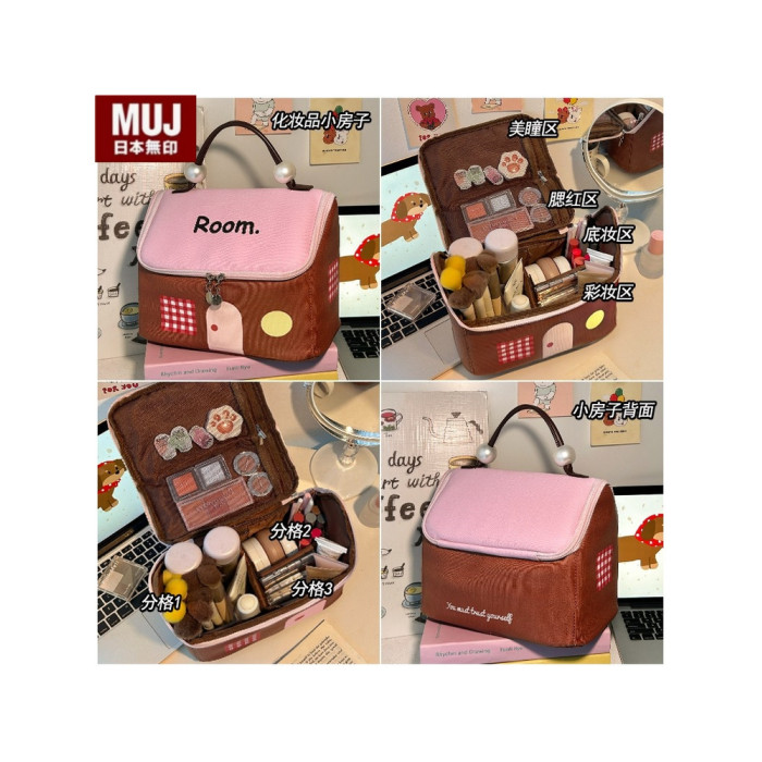 日本進口無印MUJ小房子化妝包女士大容量分區手提防水旅行收納袋