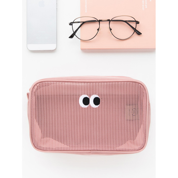 韓國livework可愛大眼睛大容量網眼化妝洗漱包數碼整理襍物收納包