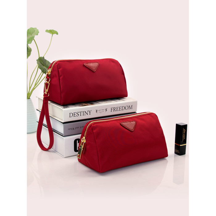 紅蝌蚪防水尼龍三角形化妝包小號可攜式可愛數碼襍物收納包手拿旅行
