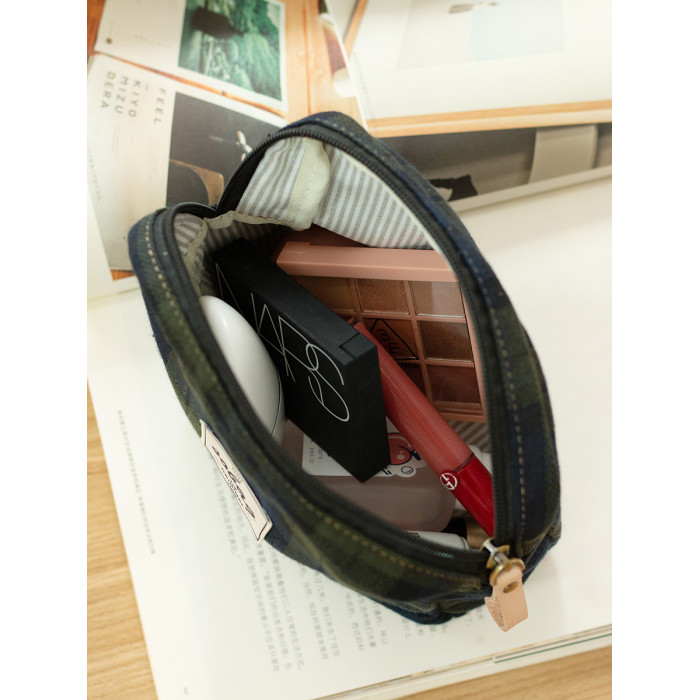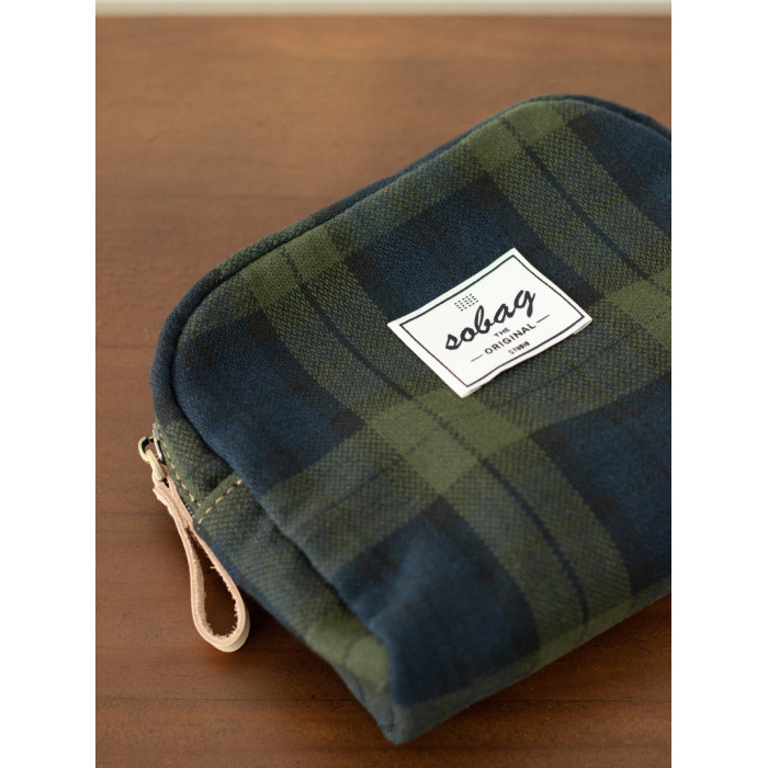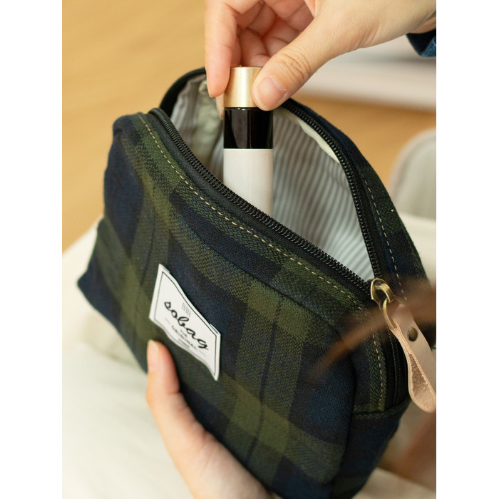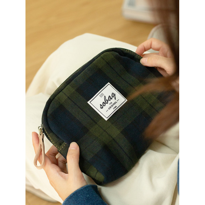 sobag日系復古大容量收納包女綠色格子棉布手拿手機包輕便化妝包