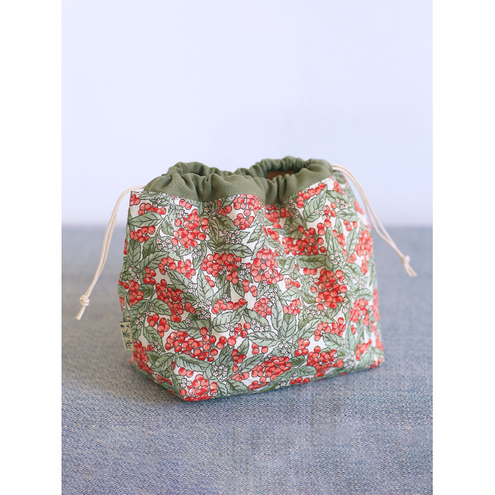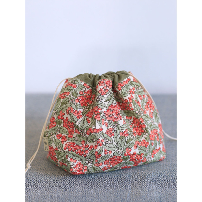 紅黃小果抽繩收納袋