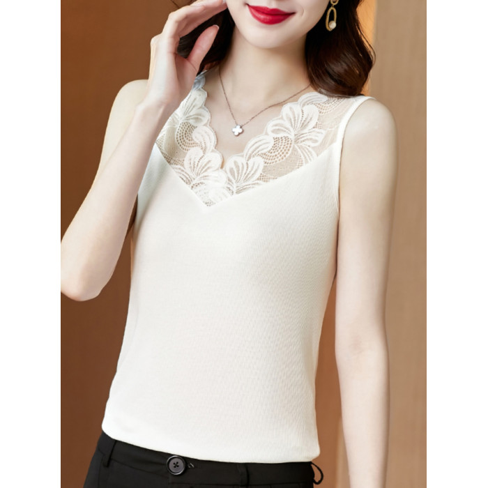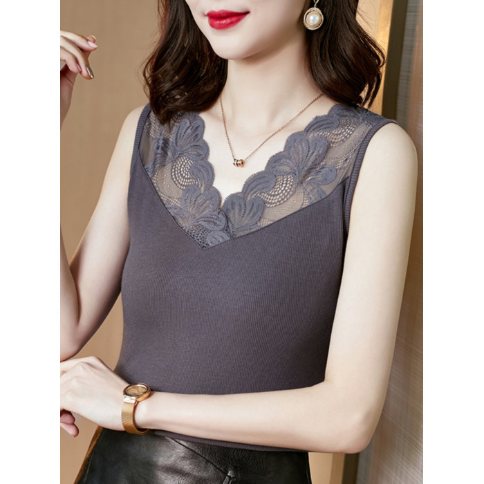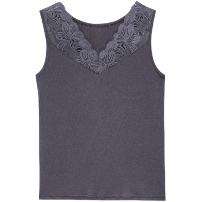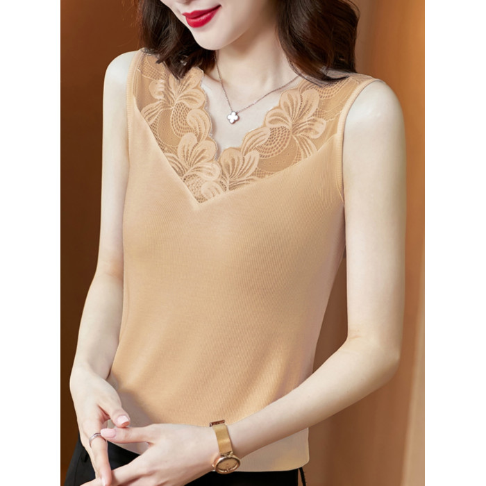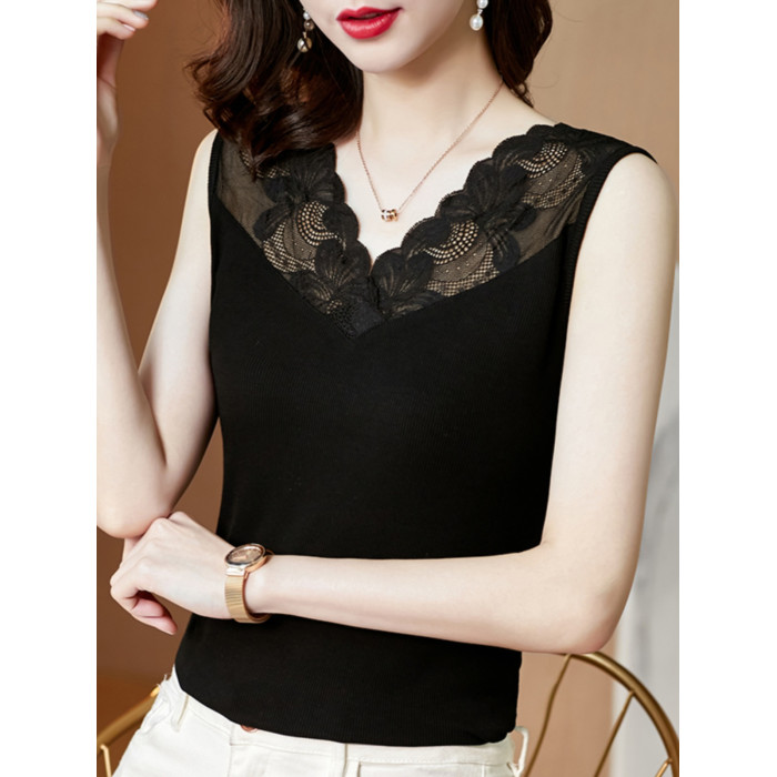 黑色莫代爾吊帶蕾絲邊V領背心女2025夏季外穿無袖西裝打底衫上衣