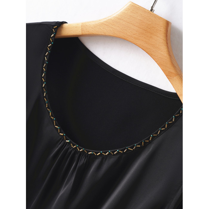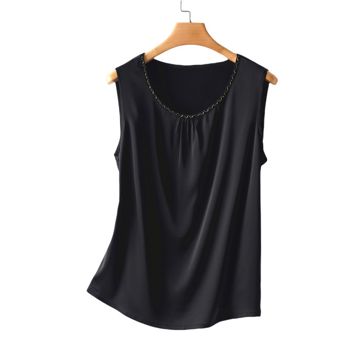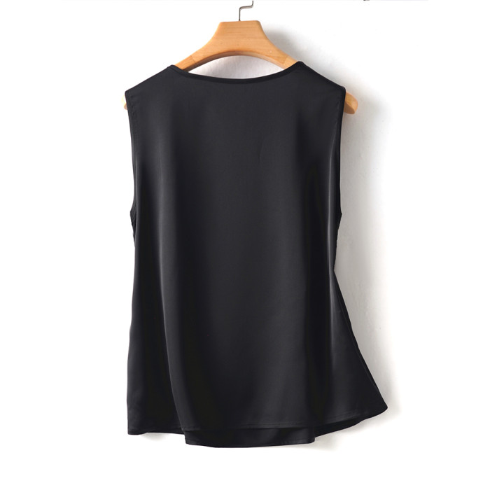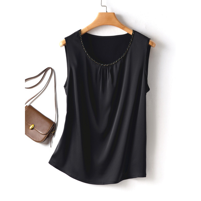 黑色高貴優雅真絲背心吊帶打底衫女裝夏季緞面桑蠶絲純色圓領上衣