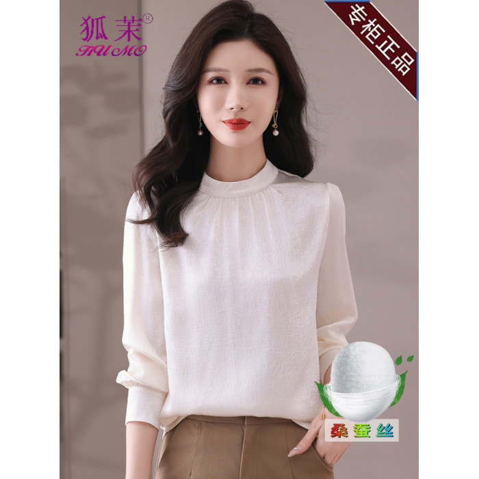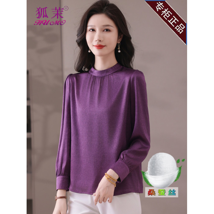 重磅真絲襯衫女長袖2025春夏裝新款紫色立領桑蠶絲上衣打底衫小衫