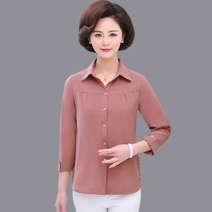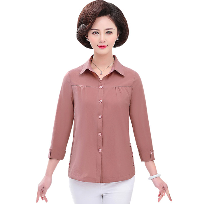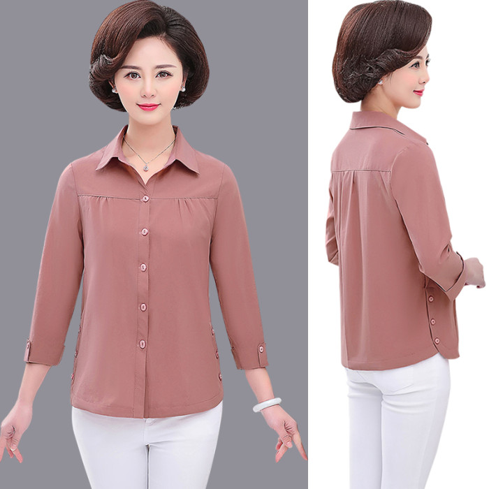 2025新款媽媽春裝襯衫長袖打底衫中年婦女上衣夏季中老年女裝襯衣