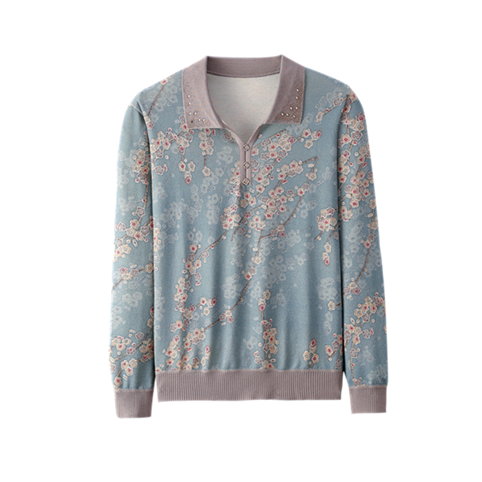 媽媽秋裝冰絲小衫洋氣上衣薄款50嵗中老年女春秋裝長袖翻領打底衫