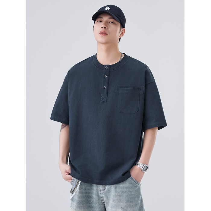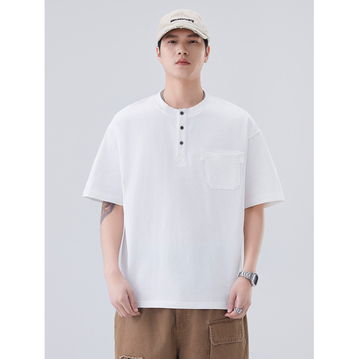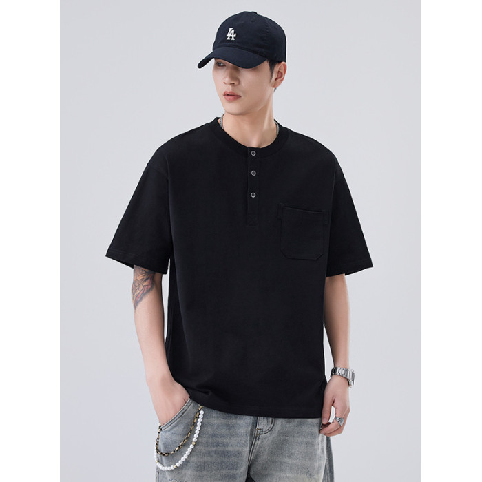 日系紐釦男裝t恤口袋純色美式重磅男款夏季上衣2025夏季短袖t恤