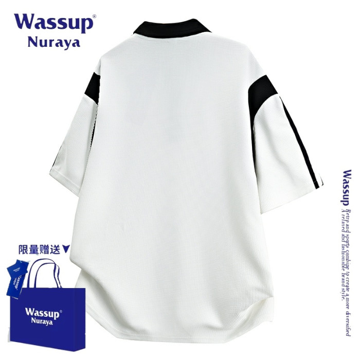 WASSUP NURAYA美式復古短袖polo衫男士夏季新款潮牌寬松休閒上衣