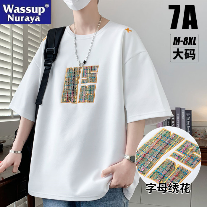 WASSUP NURAYA大碼綉花設計短袖T恤男士寬松夏季休閒青年學生半袖