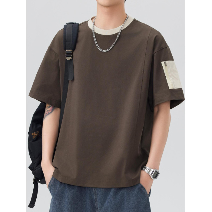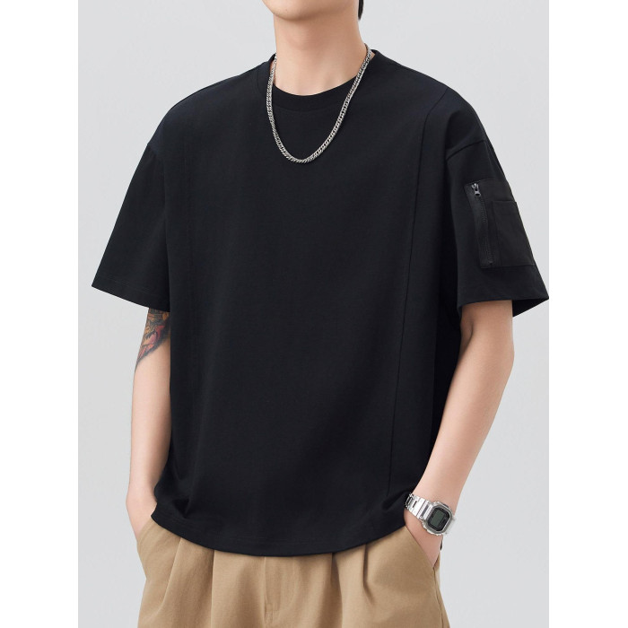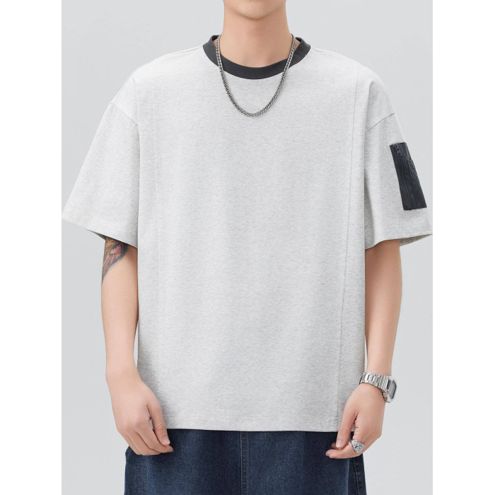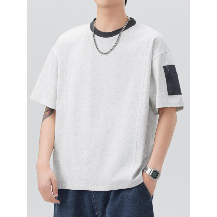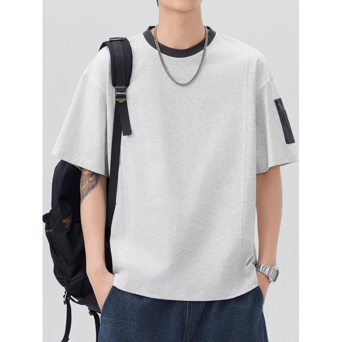 250g重磅冰感索羅娜速乾短袖t恤男寬松夏季撞色貼袋設計防曬上衣