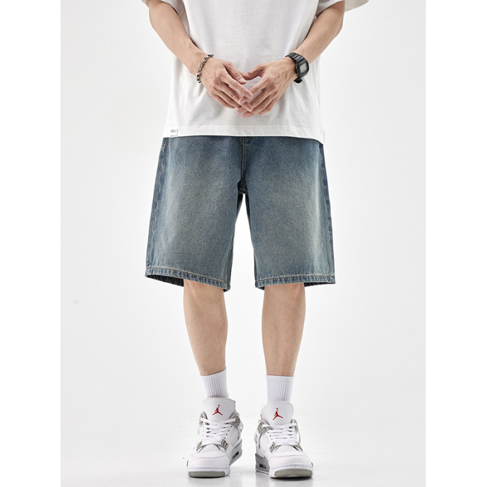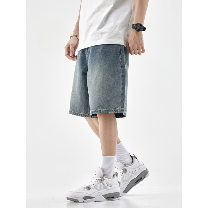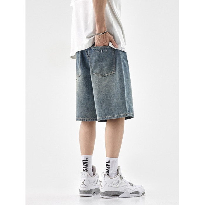復古五分牛仔短褲男2025夏季新款寬松百搭工裝休閒潮牌水洗中褲