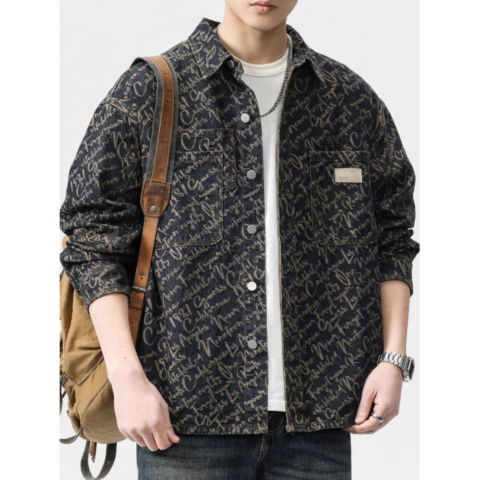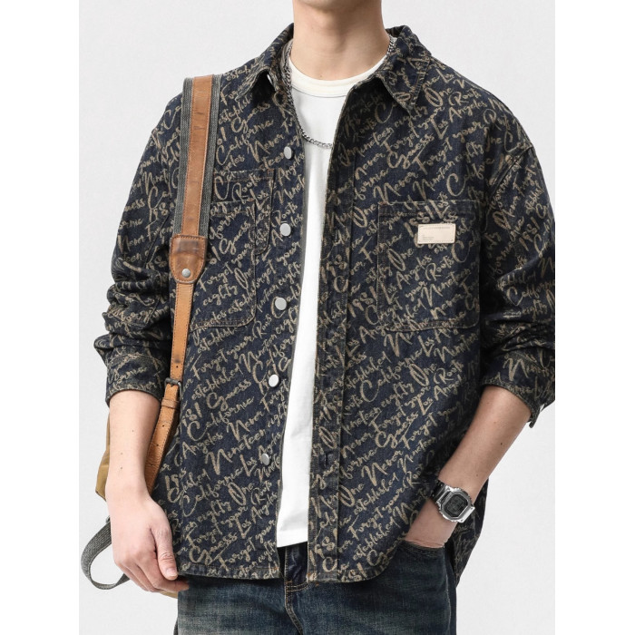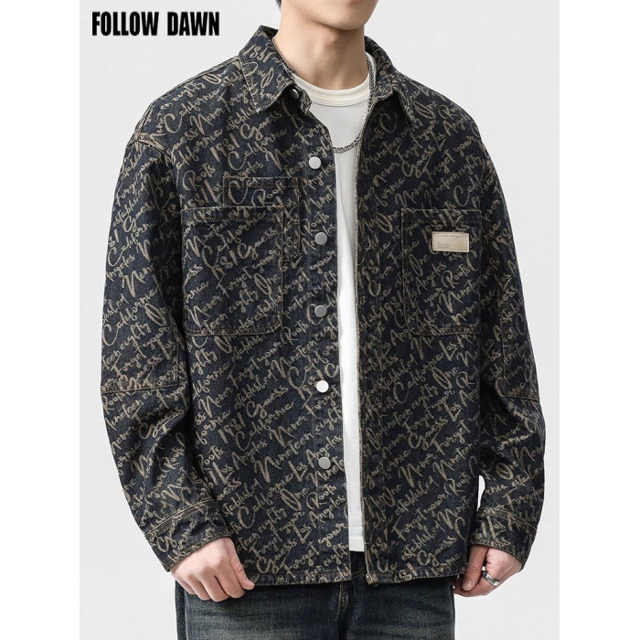 美式潮牌牛仔襯衫男長袖2025春季復古水洗翻領休閒襯衣外套夾克