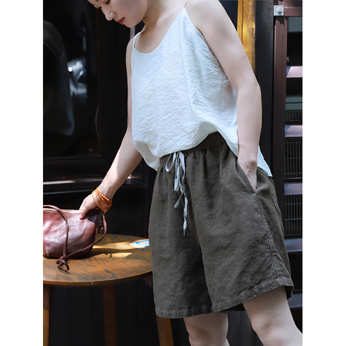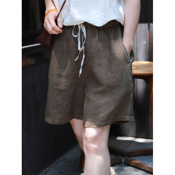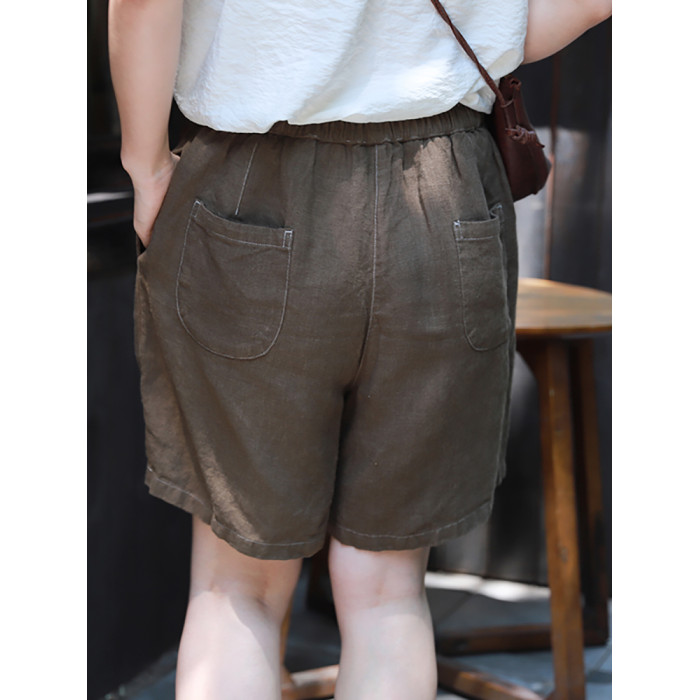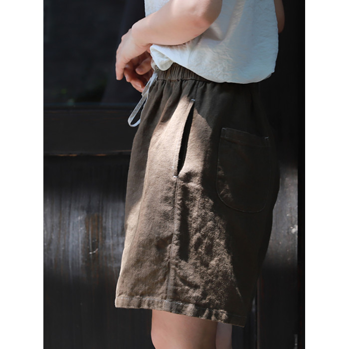 雨文她城原創土黃軍綠色漢麻簡約寬松女短褲chao有型有質感五分褲