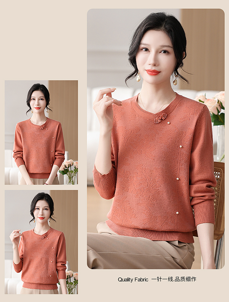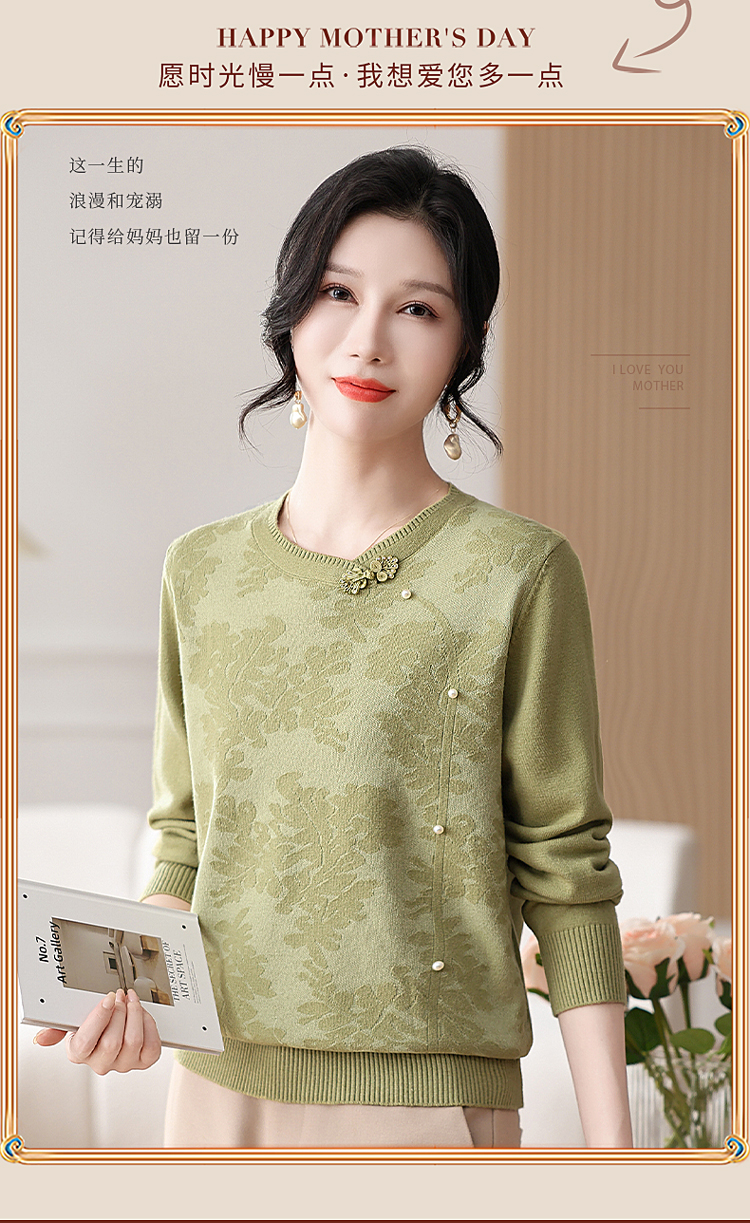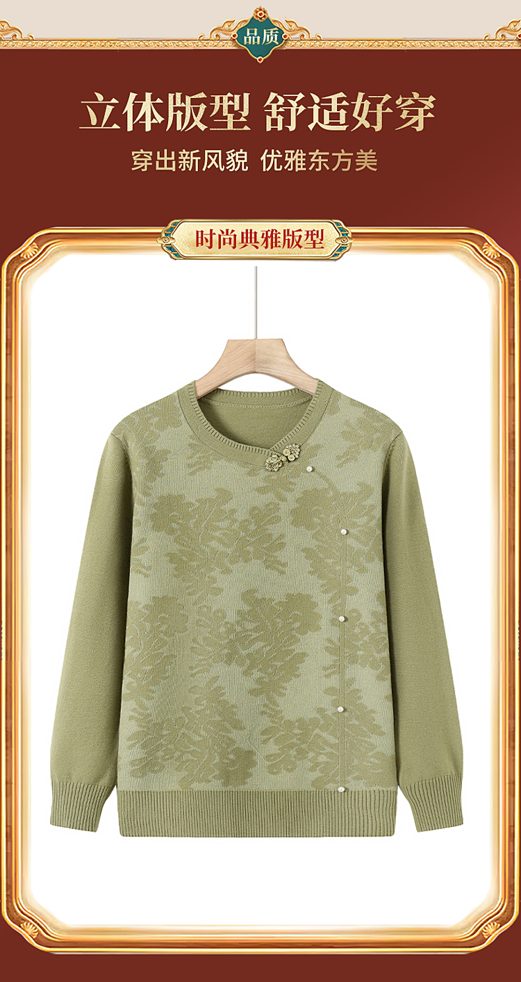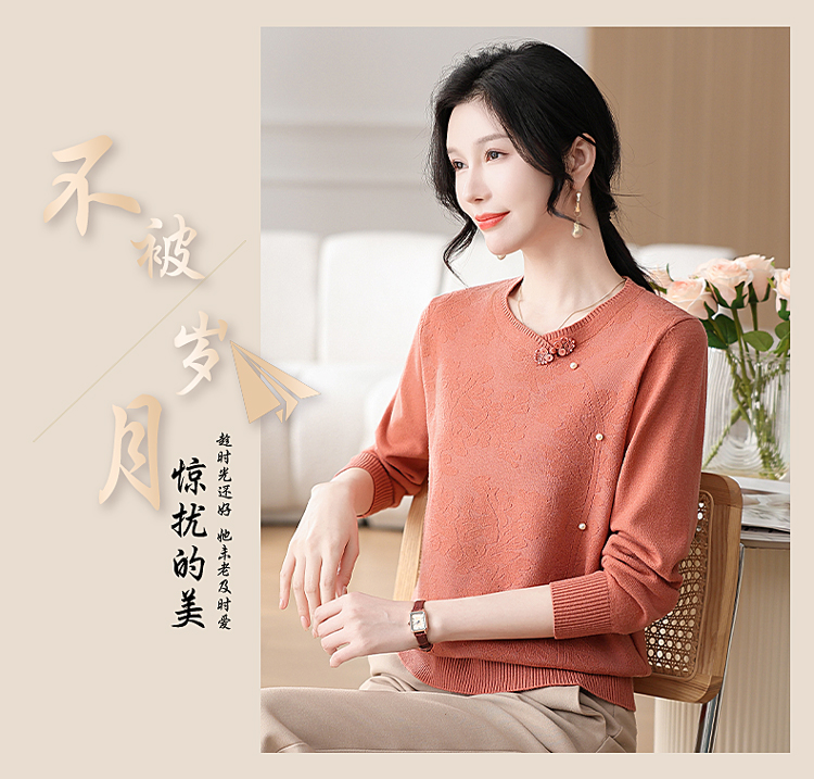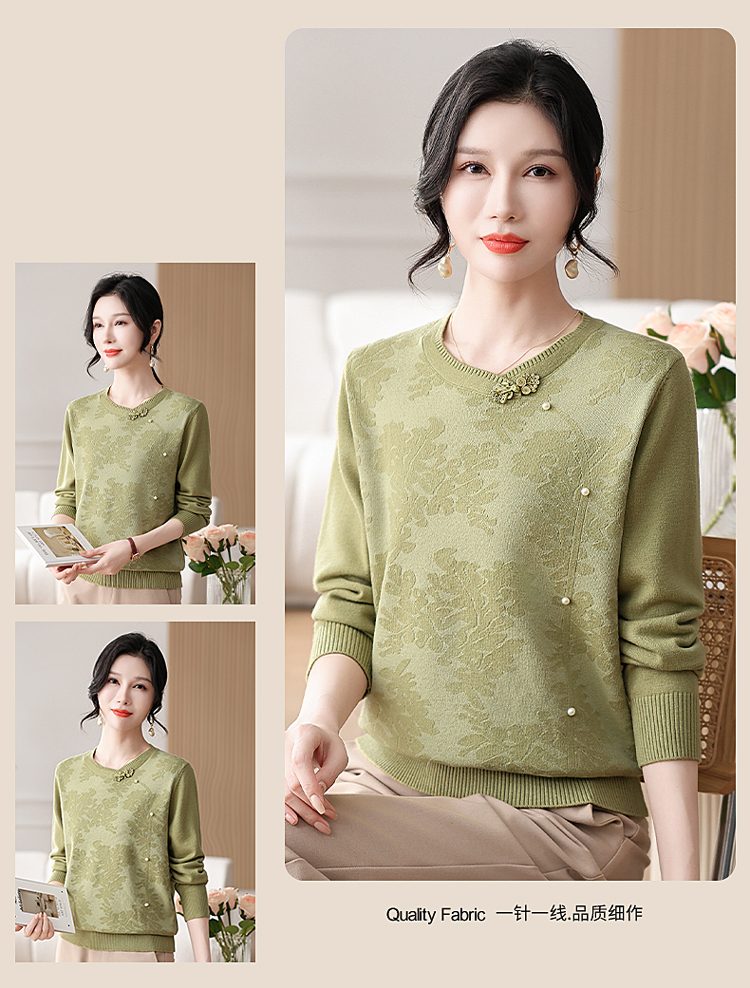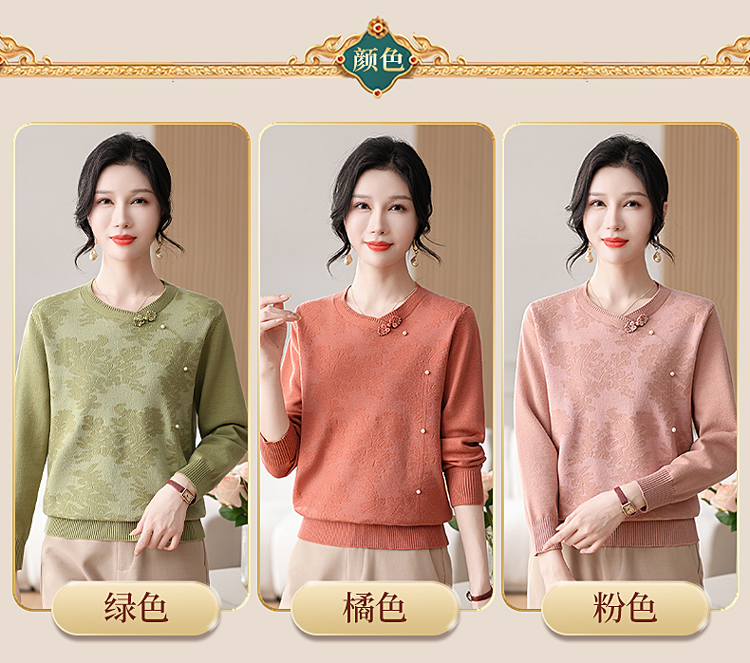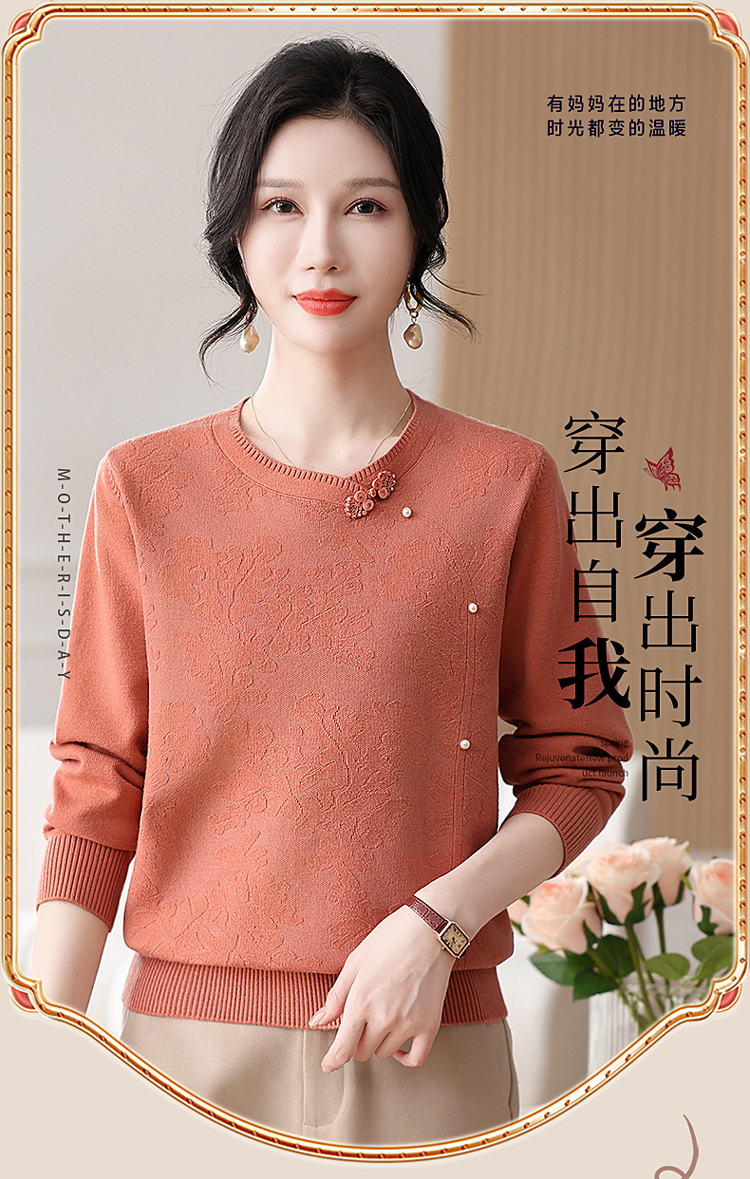 時尚媽媽春裝針織復古小衫洋氣上衣2025新款中年女裝新中式打底衫