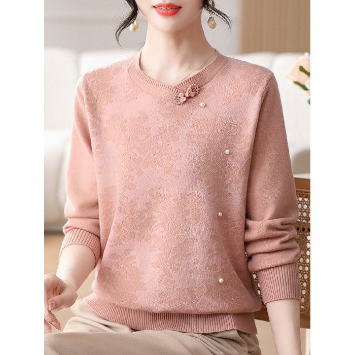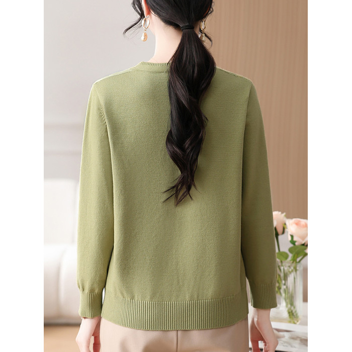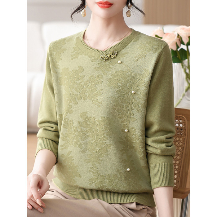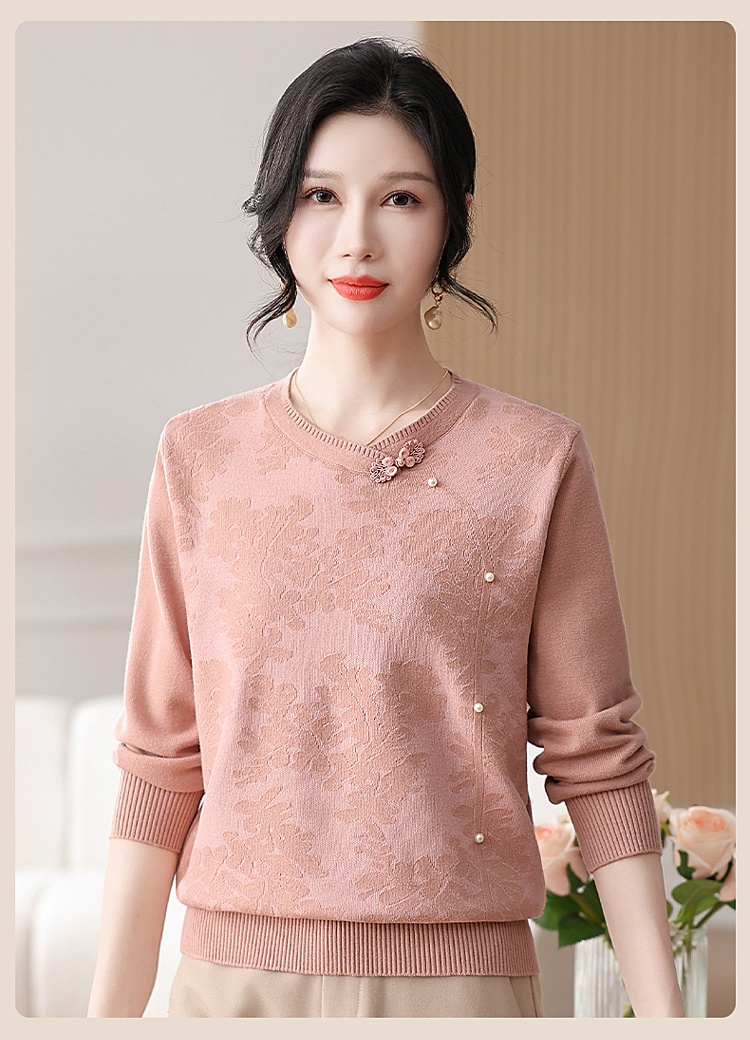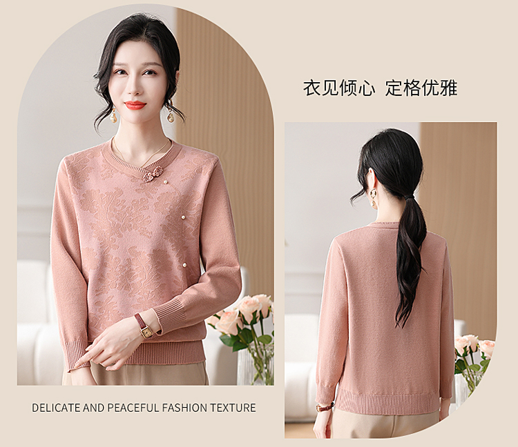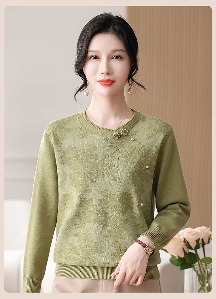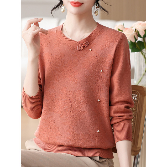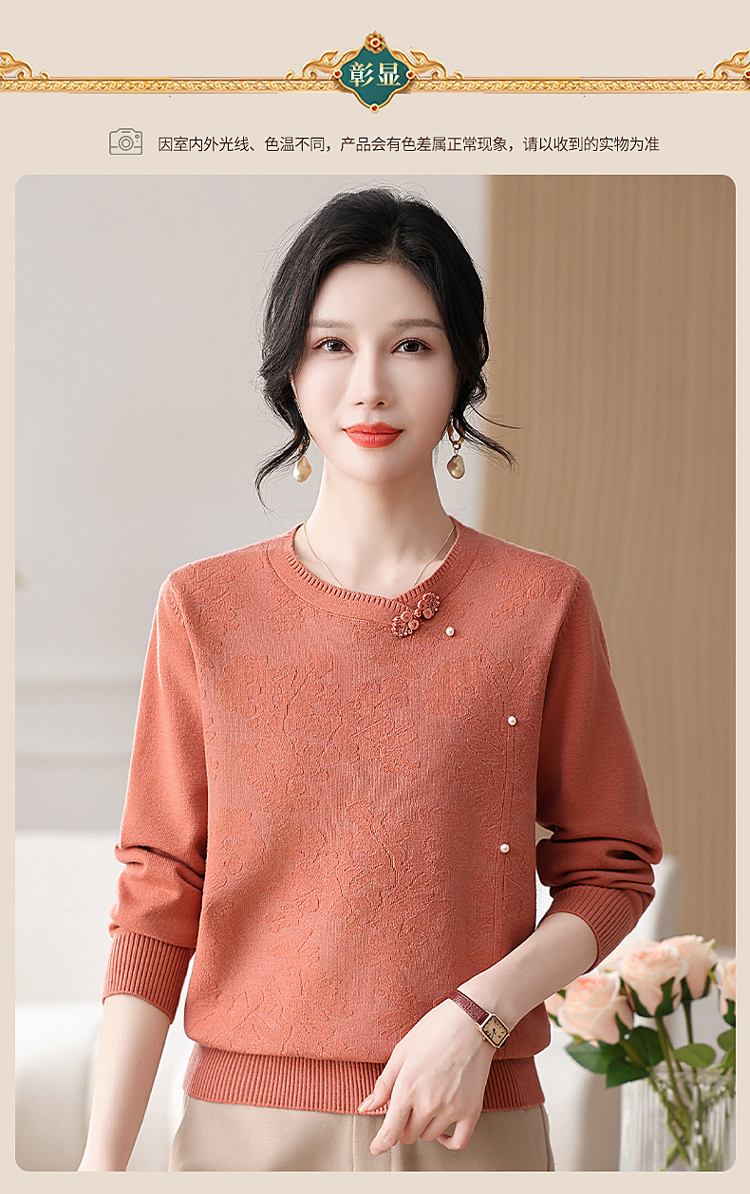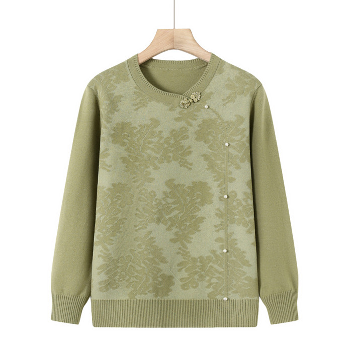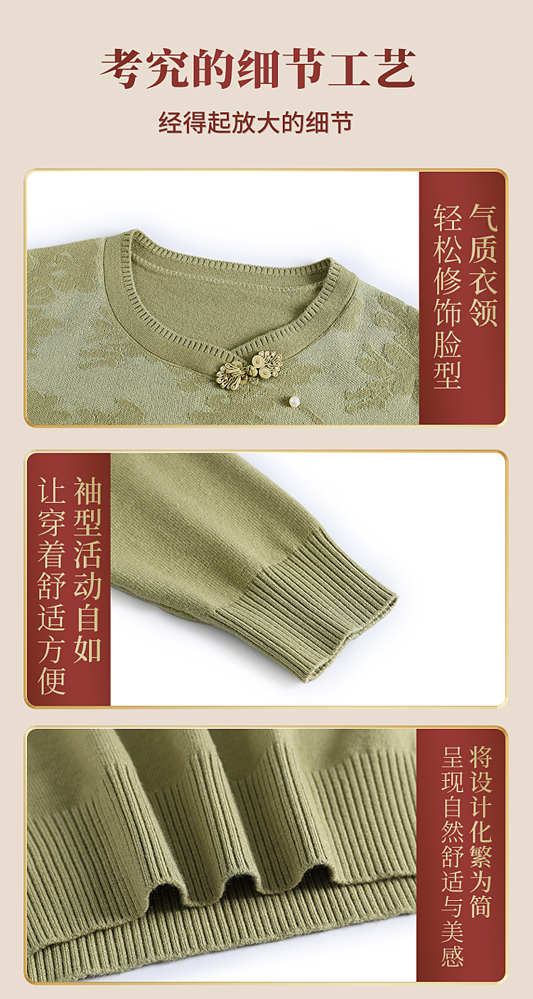 時尚媽媽春裝針織復古小衫洋氣上衣2025新款中年女裝新中式打底衫