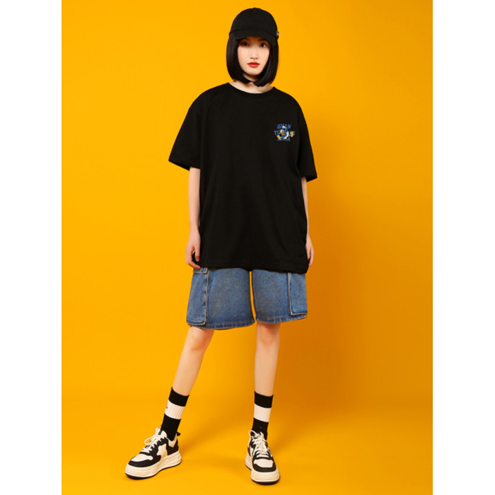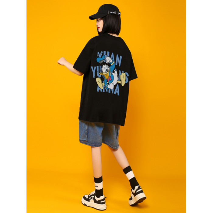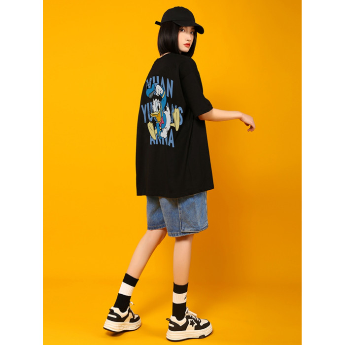 黑色唐老鴨款T恤+牛仔短褲套裝