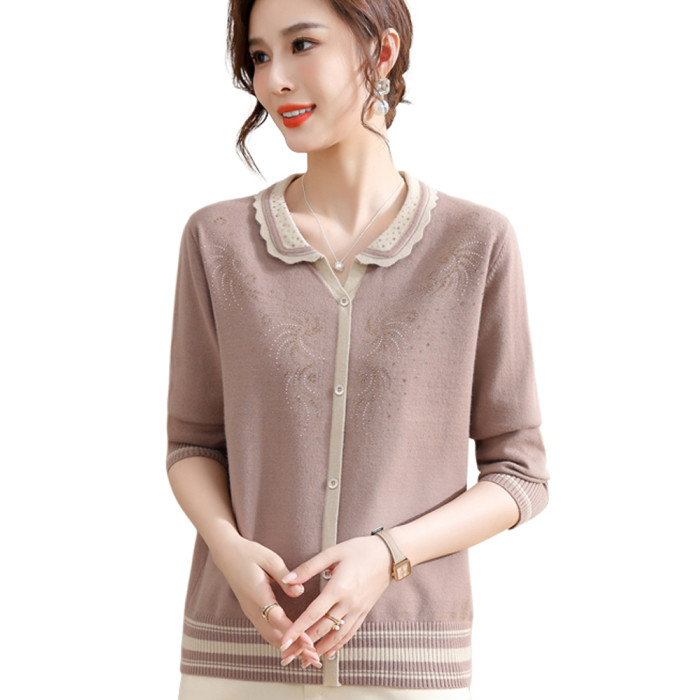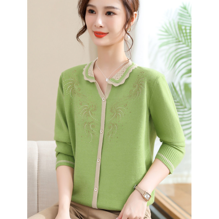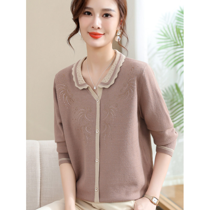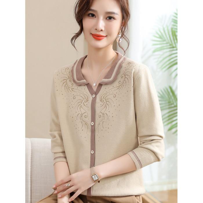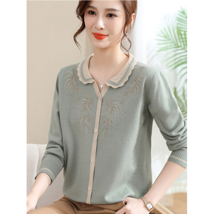 中年媽媽針織打底衫翻領洋氣上衣中老年女裝春秋長袖毛衣薄款套裝