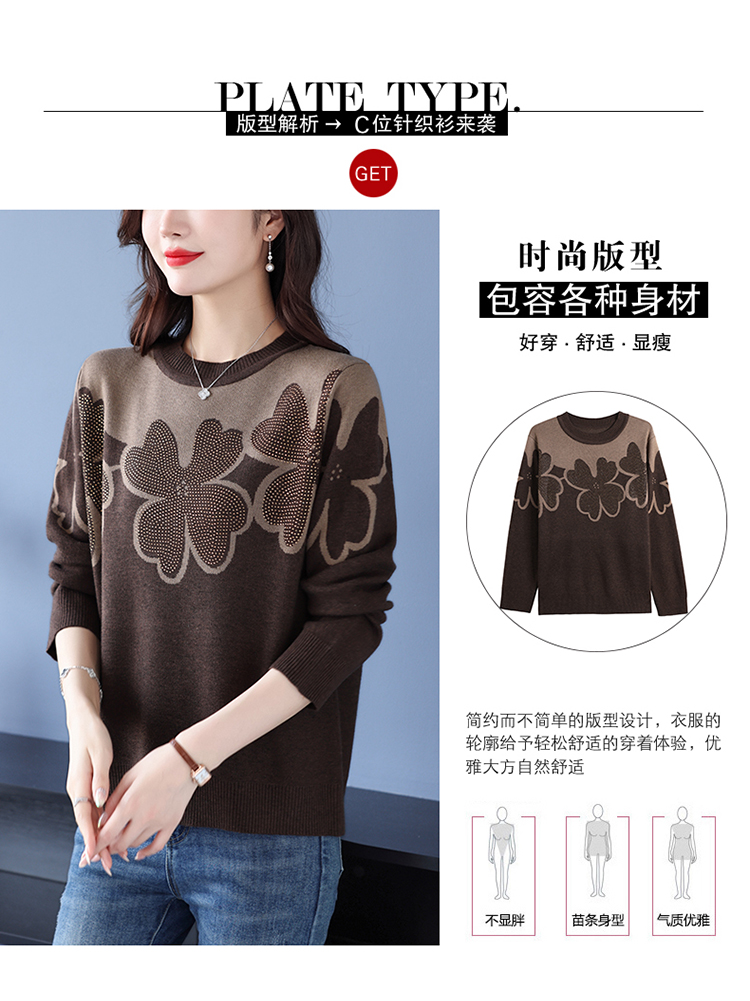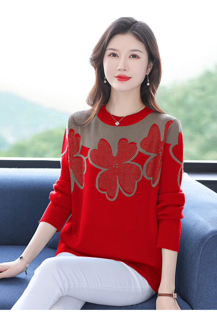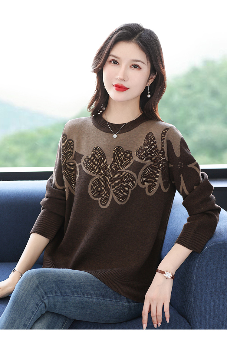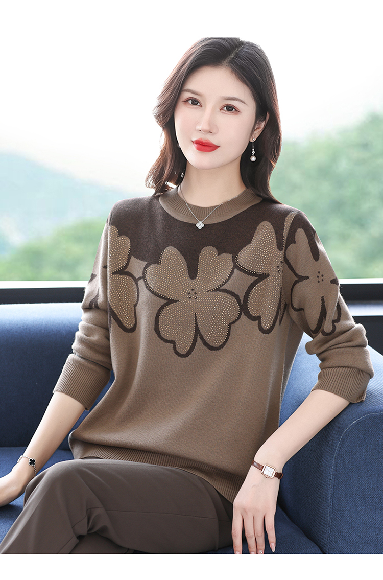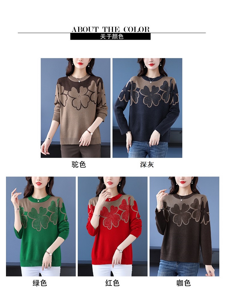 中年媽媽春秋裝新款圓領毛衣女寬松加肥加大碼針織上衣羊毛打底衫