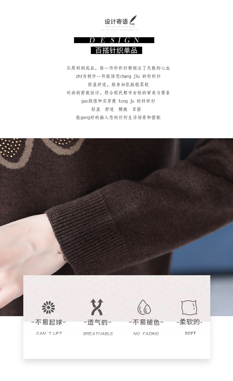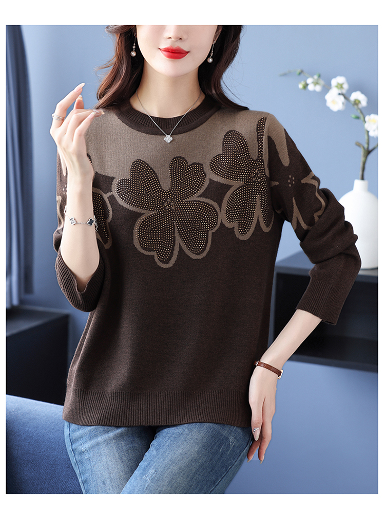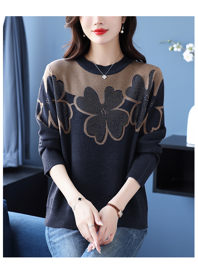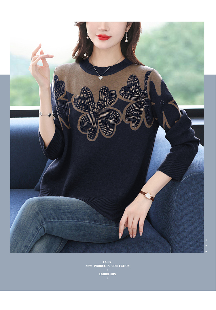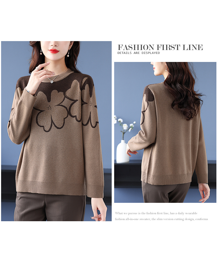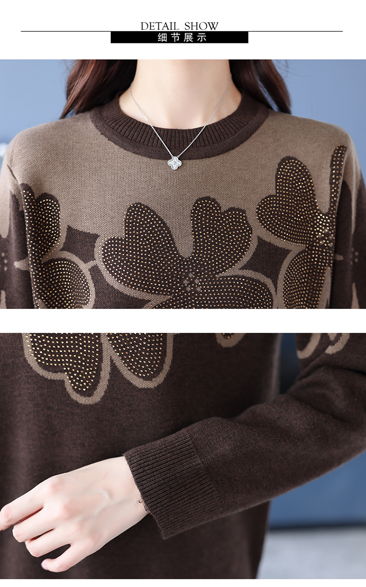 中年媽媽春秋裝新款圓領毛衣女寬松加肥加大碼針織上衣羊毛打底衫