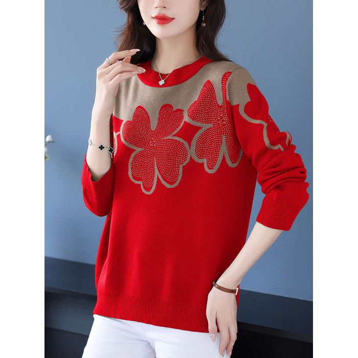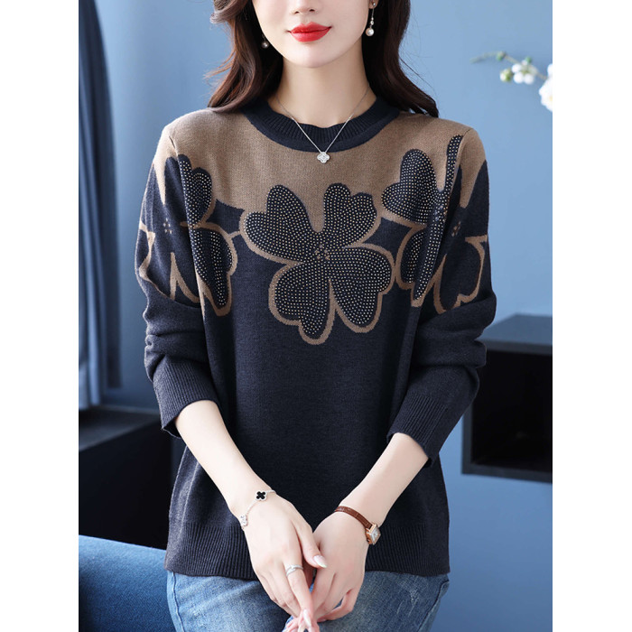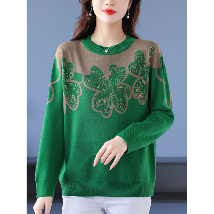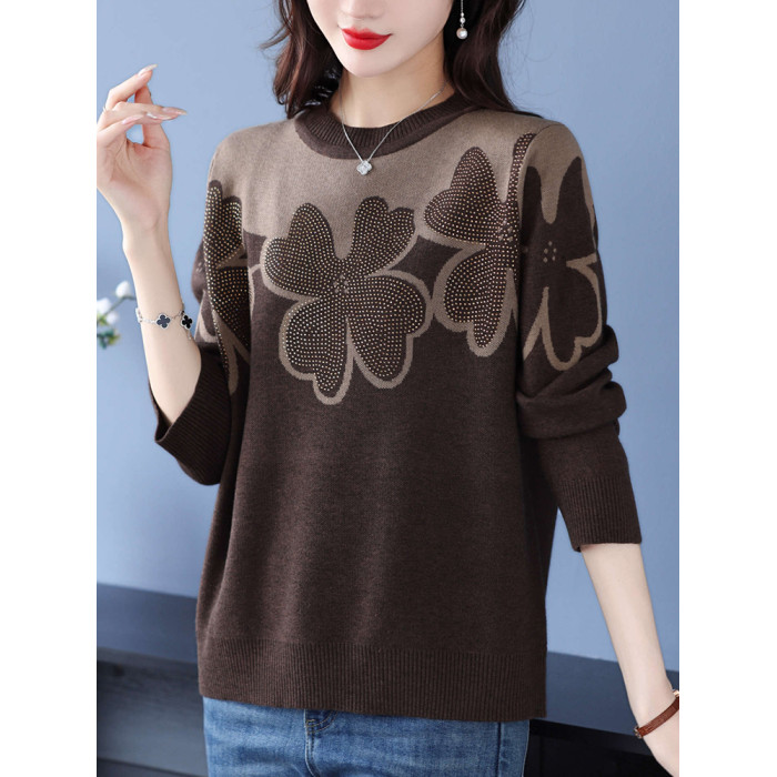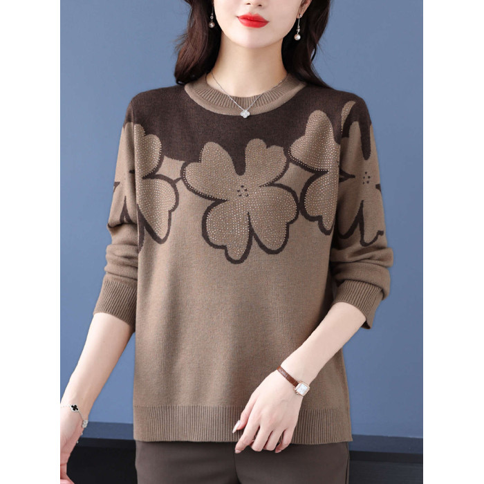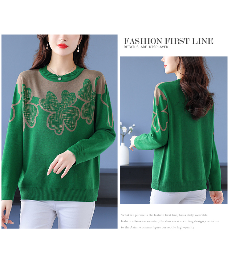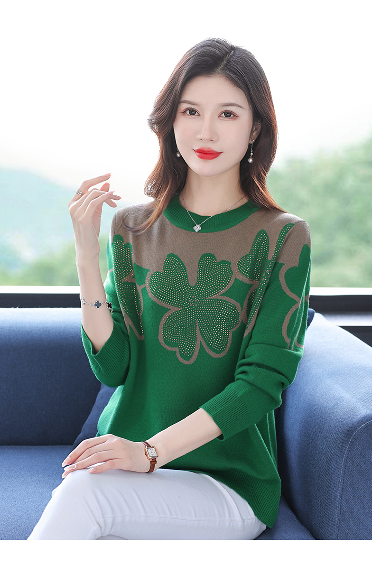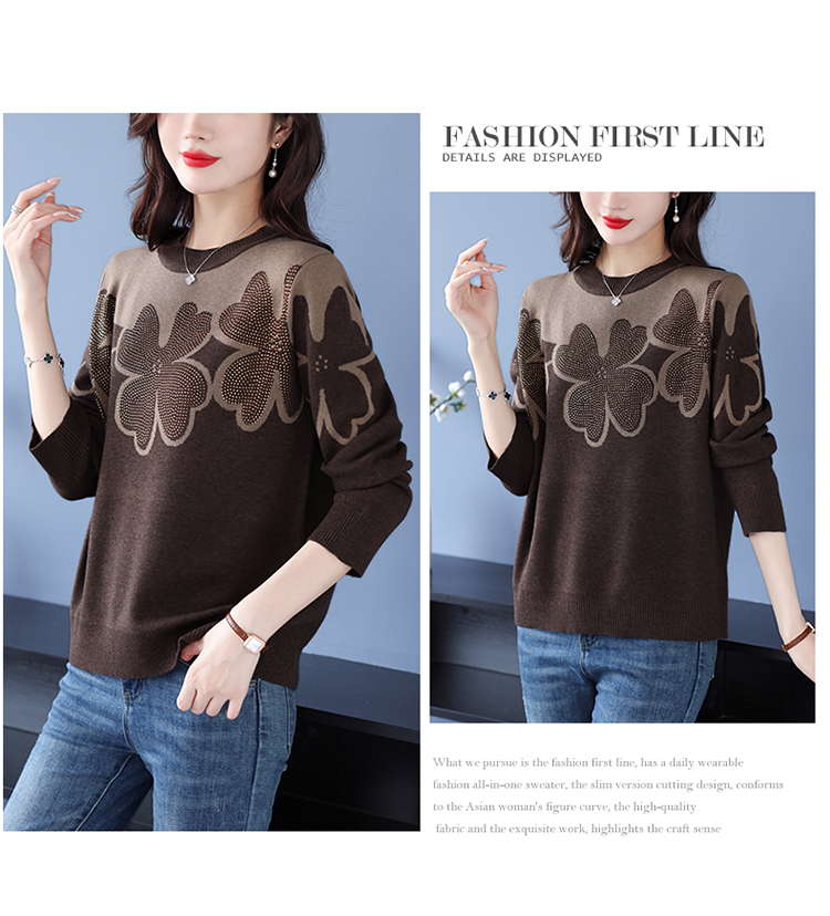 中年媽媽春秋裝新款圓領毛衣女寬松加肥加大碼針織上衣羊毛打底衫