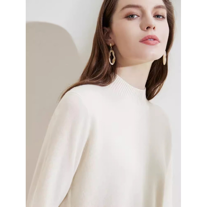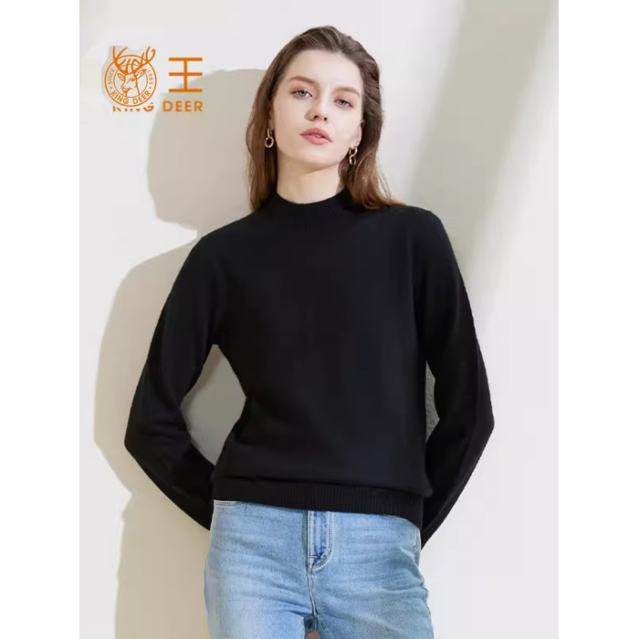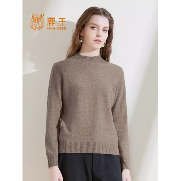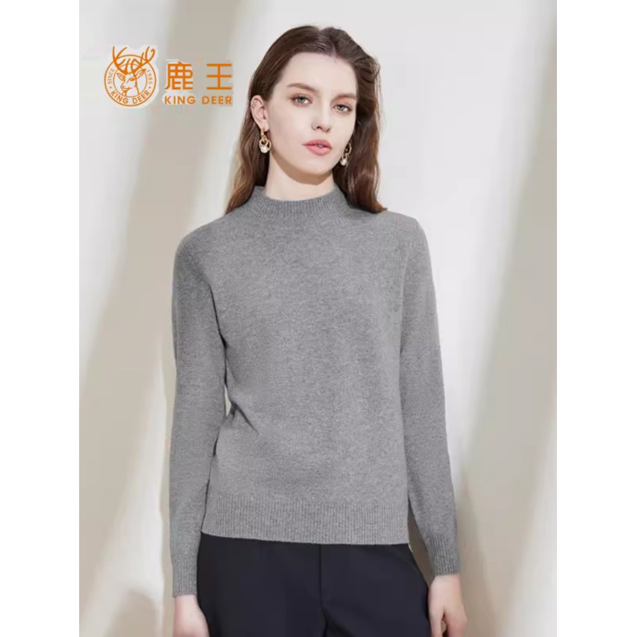 鹿王羊絨衫女半高領平針純色套頭輕薄打底衫2024秋冬新款升級款