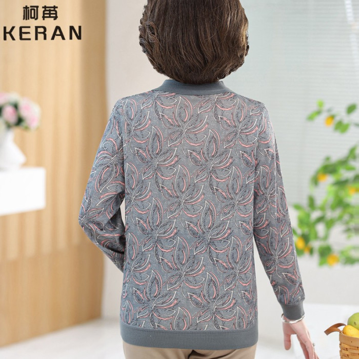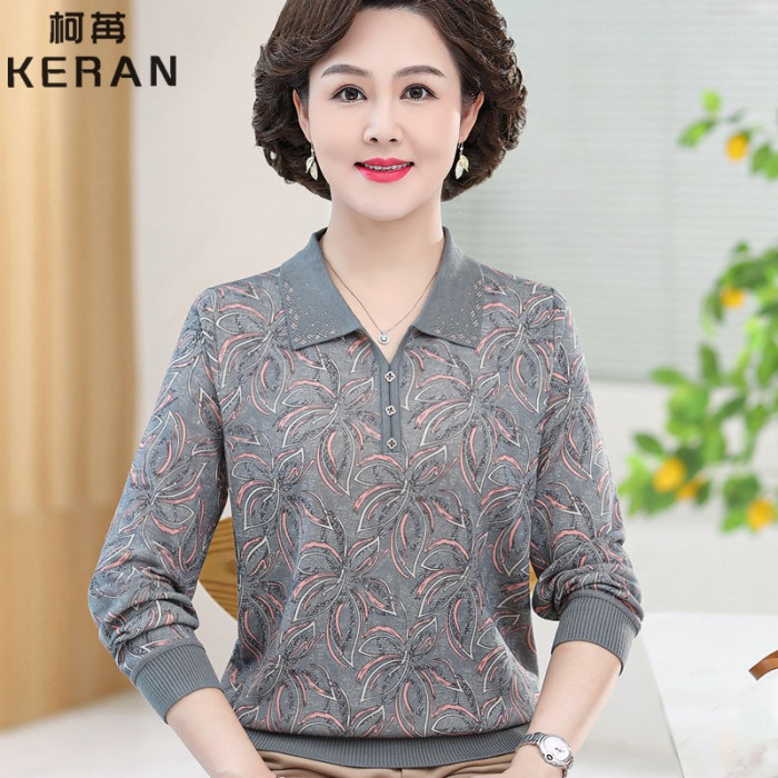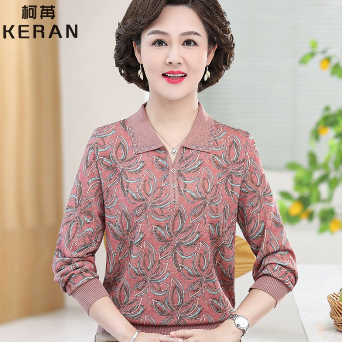 媽媽秋裝冰絲小衫洋氣上衣薄款2022新款中年女春秋長袖打底衫套裝