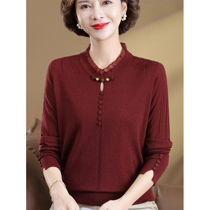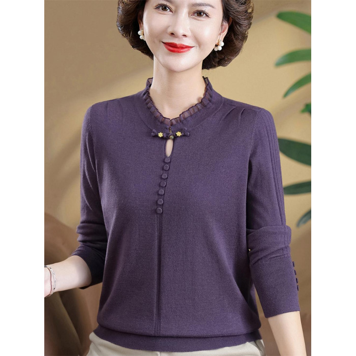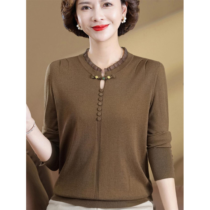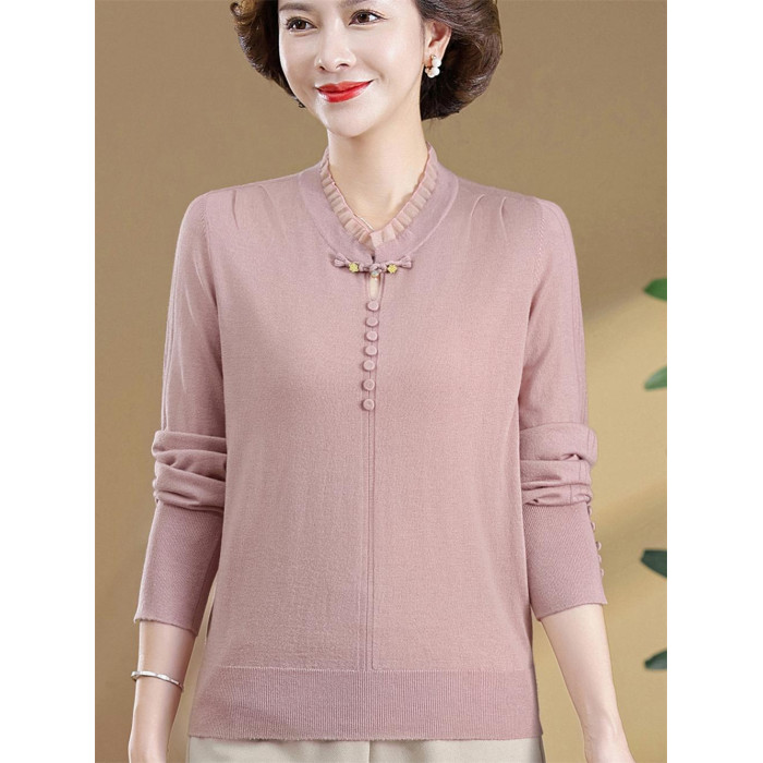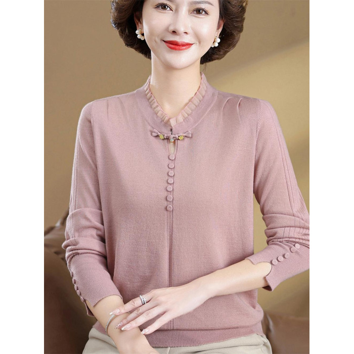2025新款媽媽秋裝洋氣國風針織衫中老年女毛衣秋季打底衫寬松上衣