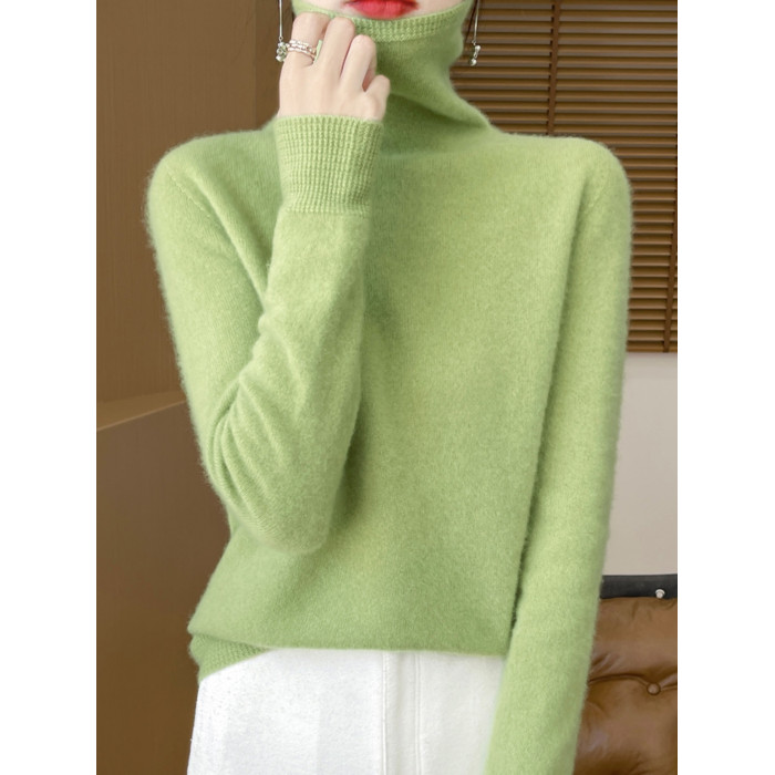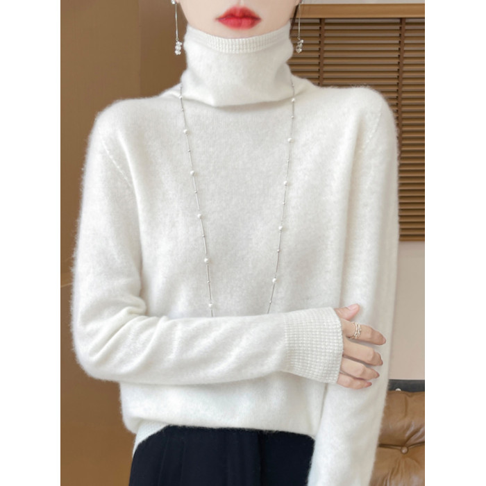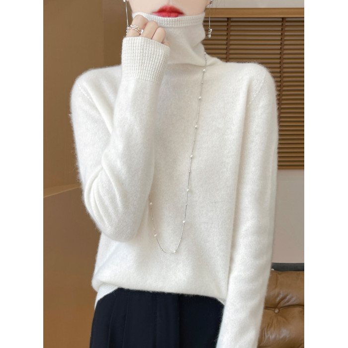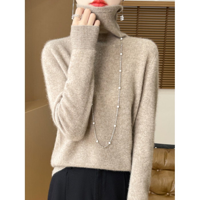 秋冬新款100%羊絨衫女堆堆領寬松休閒百搭針織高領毛衣打底衫上衣
