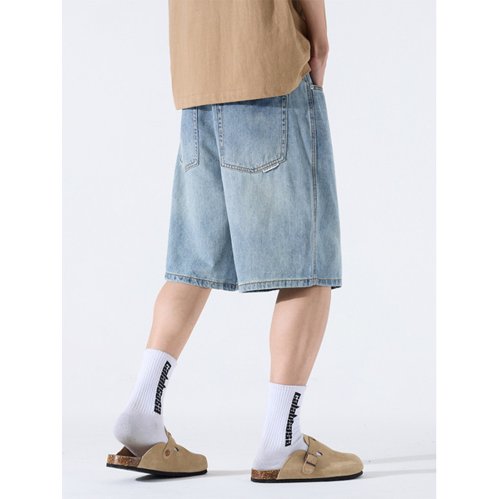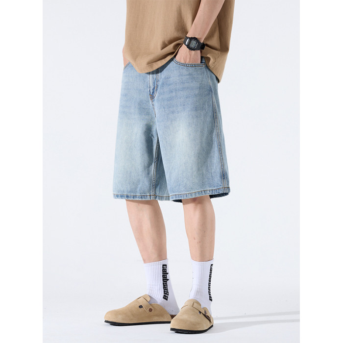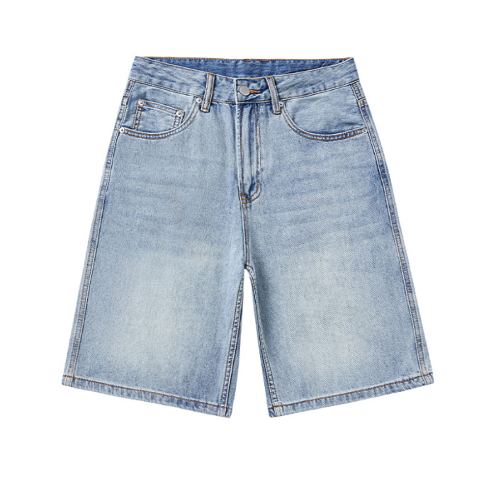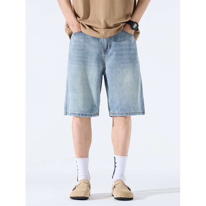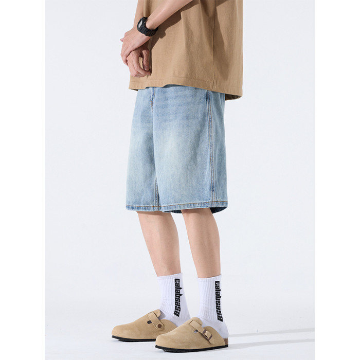 萊賽爾天絲淺色牛仔短褲男士2025夏季薄款寬松直筒五分中褲