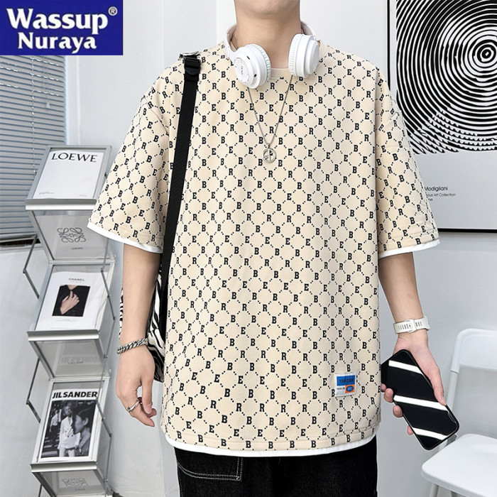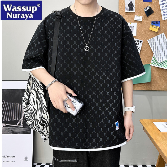 WASSUP NURAYA短恤T恤男士夏季潮牌百搭時尚帥氣寬松印花運動上衣