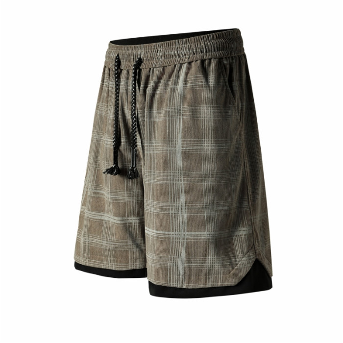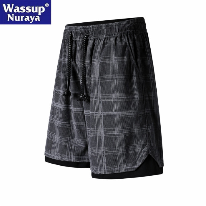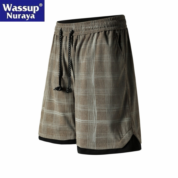 WASSUP Nuraya潮牌夏季冰絲薄休閒五分褲男條紋假兩件運動沙灘褲