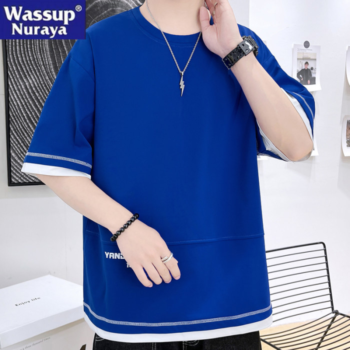WASSUP NURAYA短袖t恤男夏季薄款潮牌2025新款假兩件冰絲感打底衫
