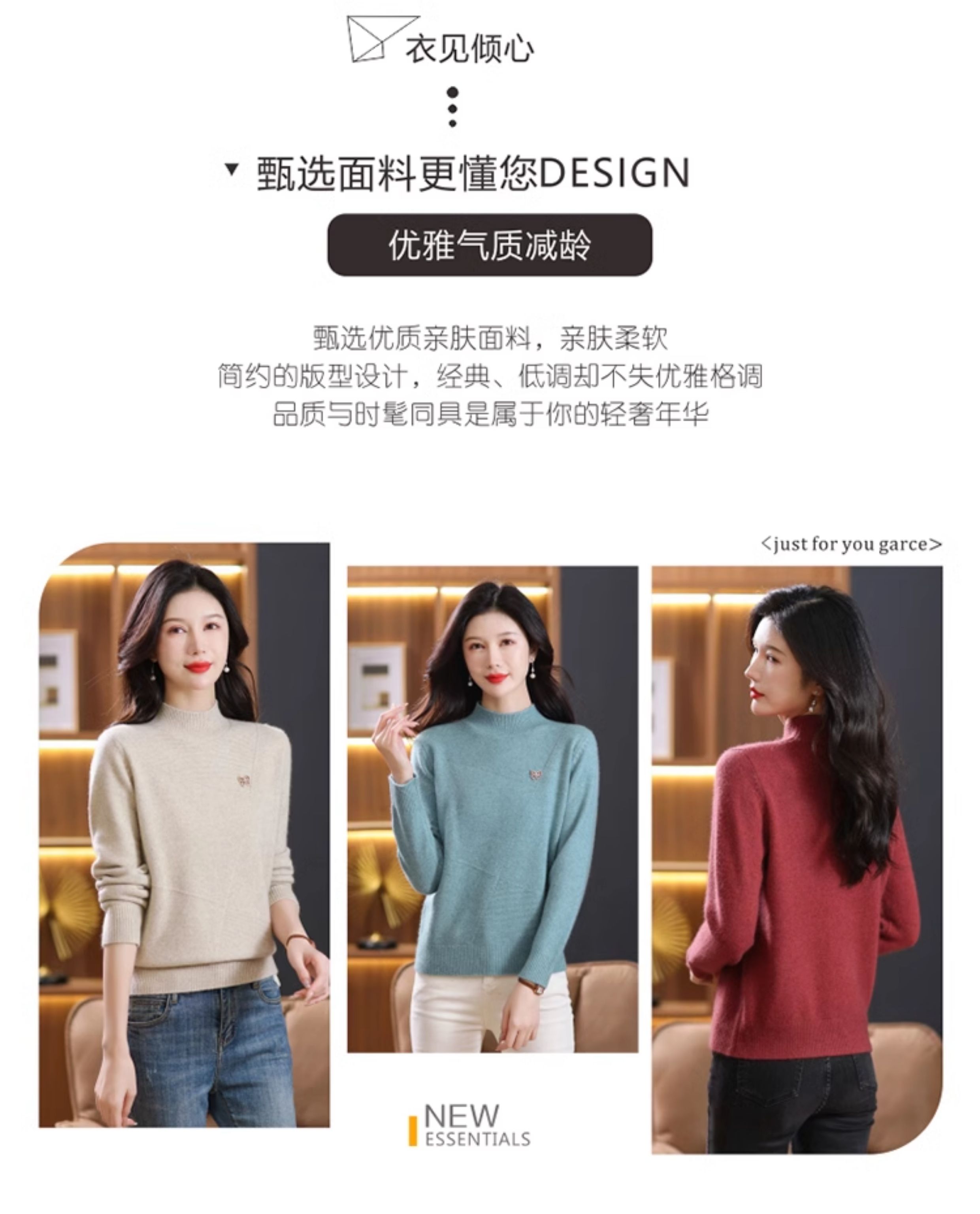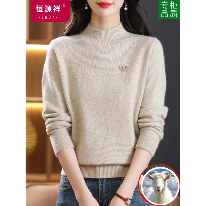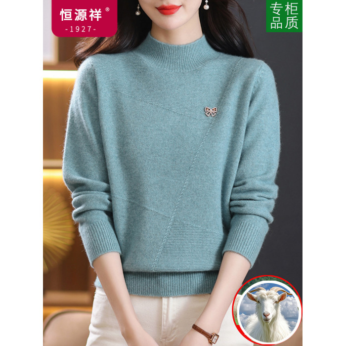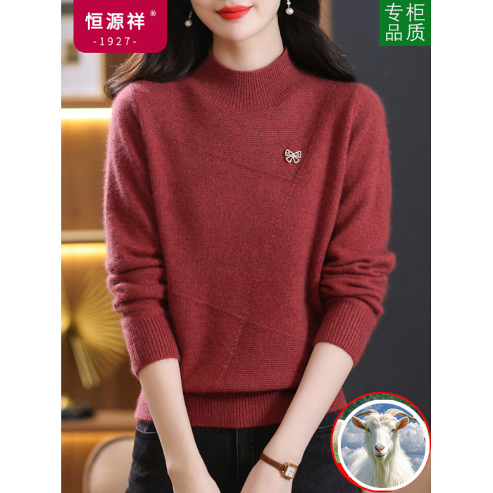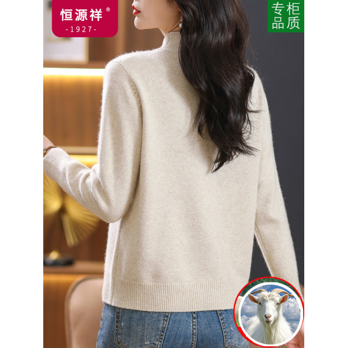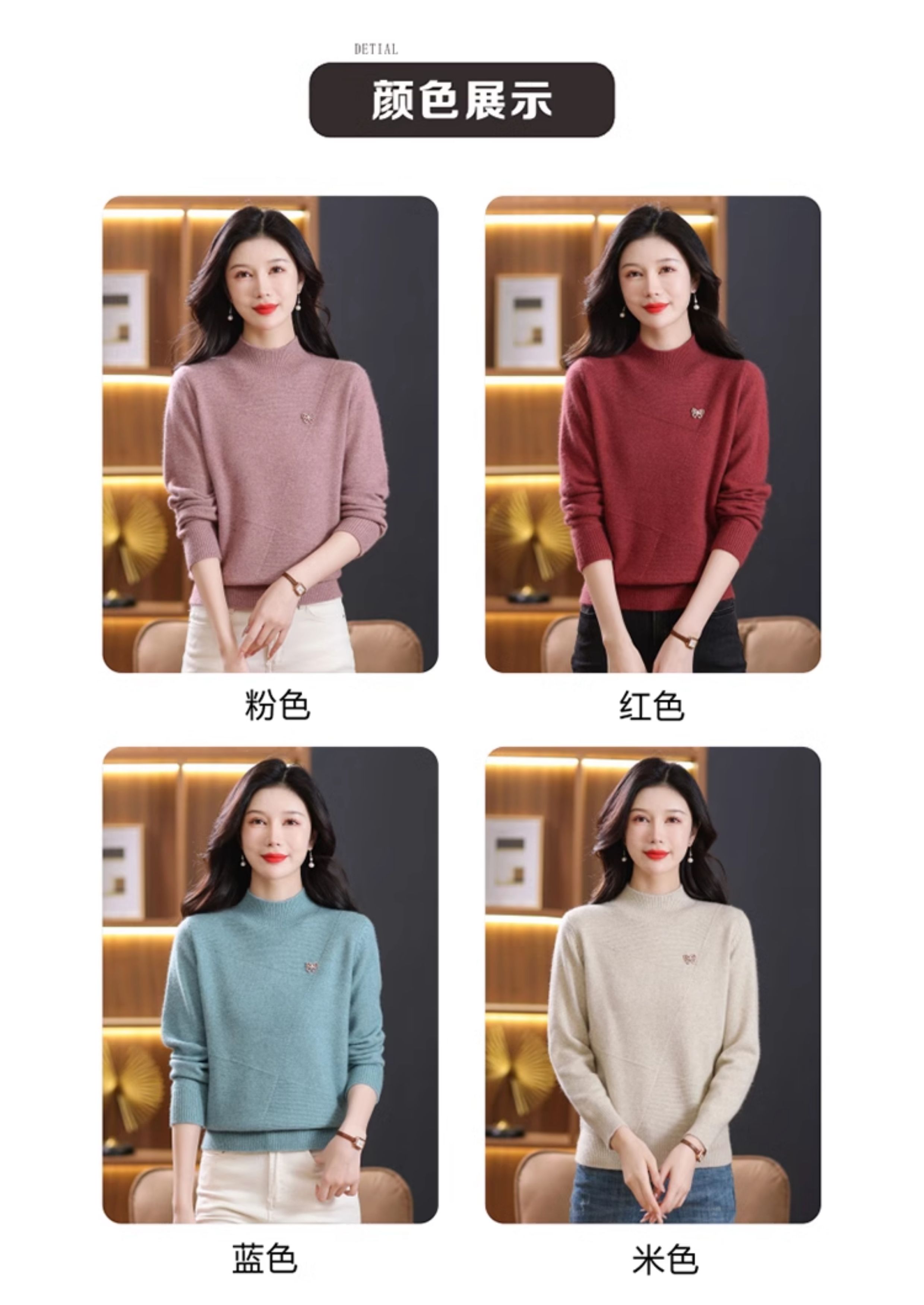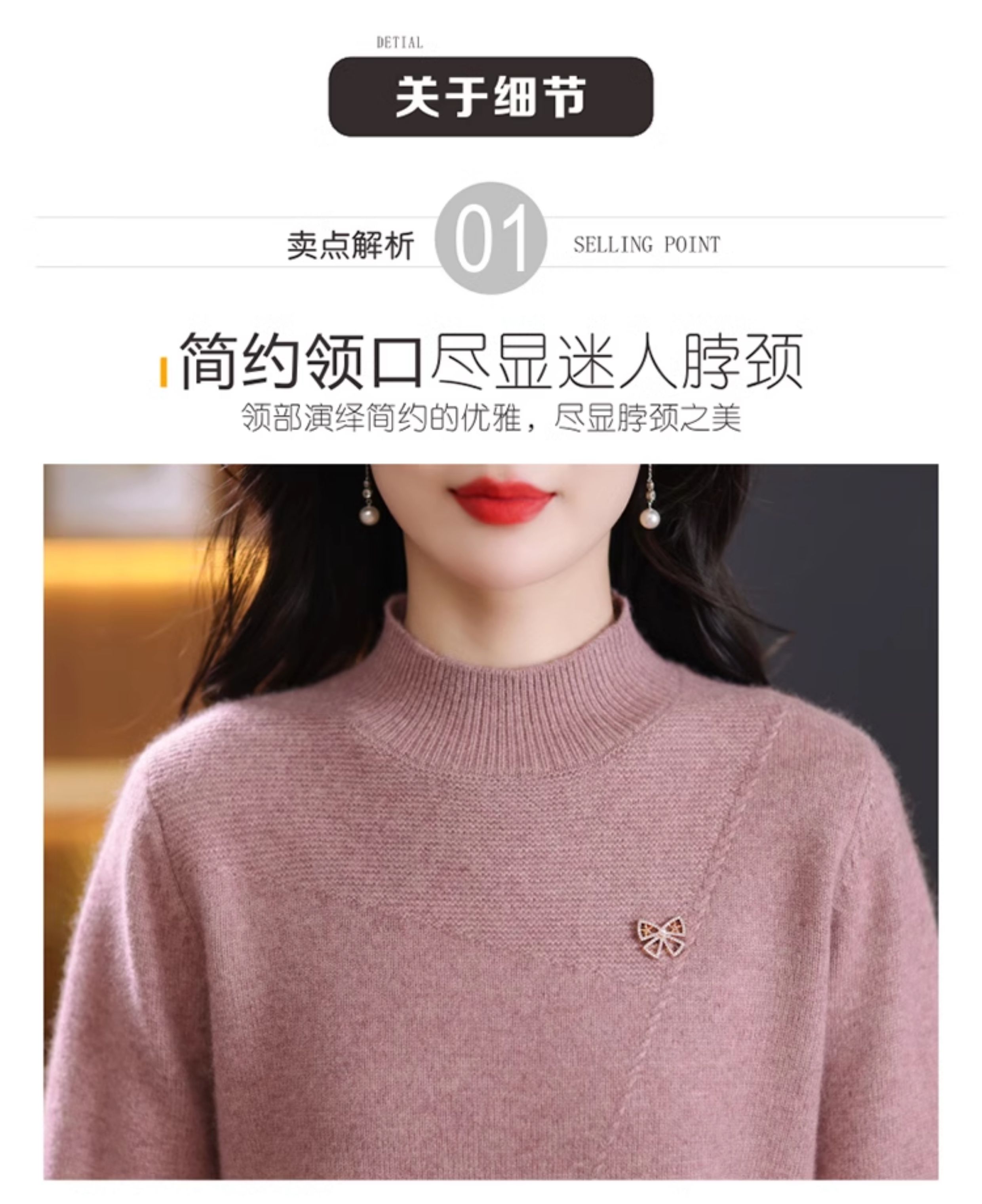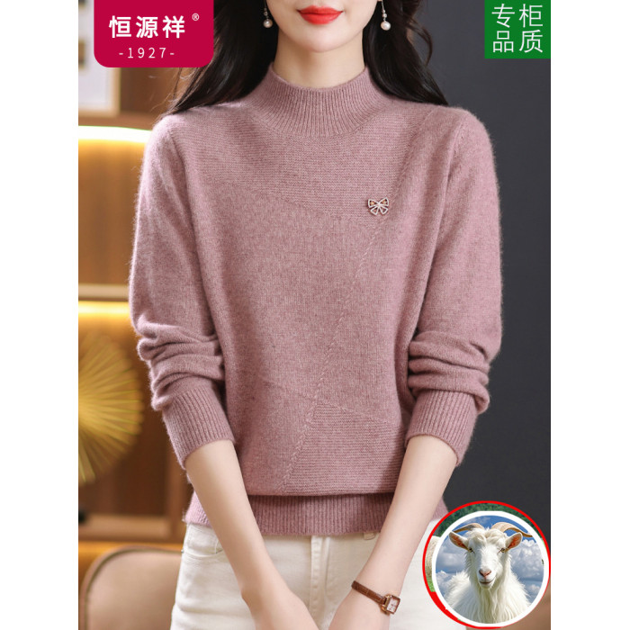 恒源祥半高領羊毛絨衫女2024秋冬新款短款套頭毛衣加厚內搭打底衫