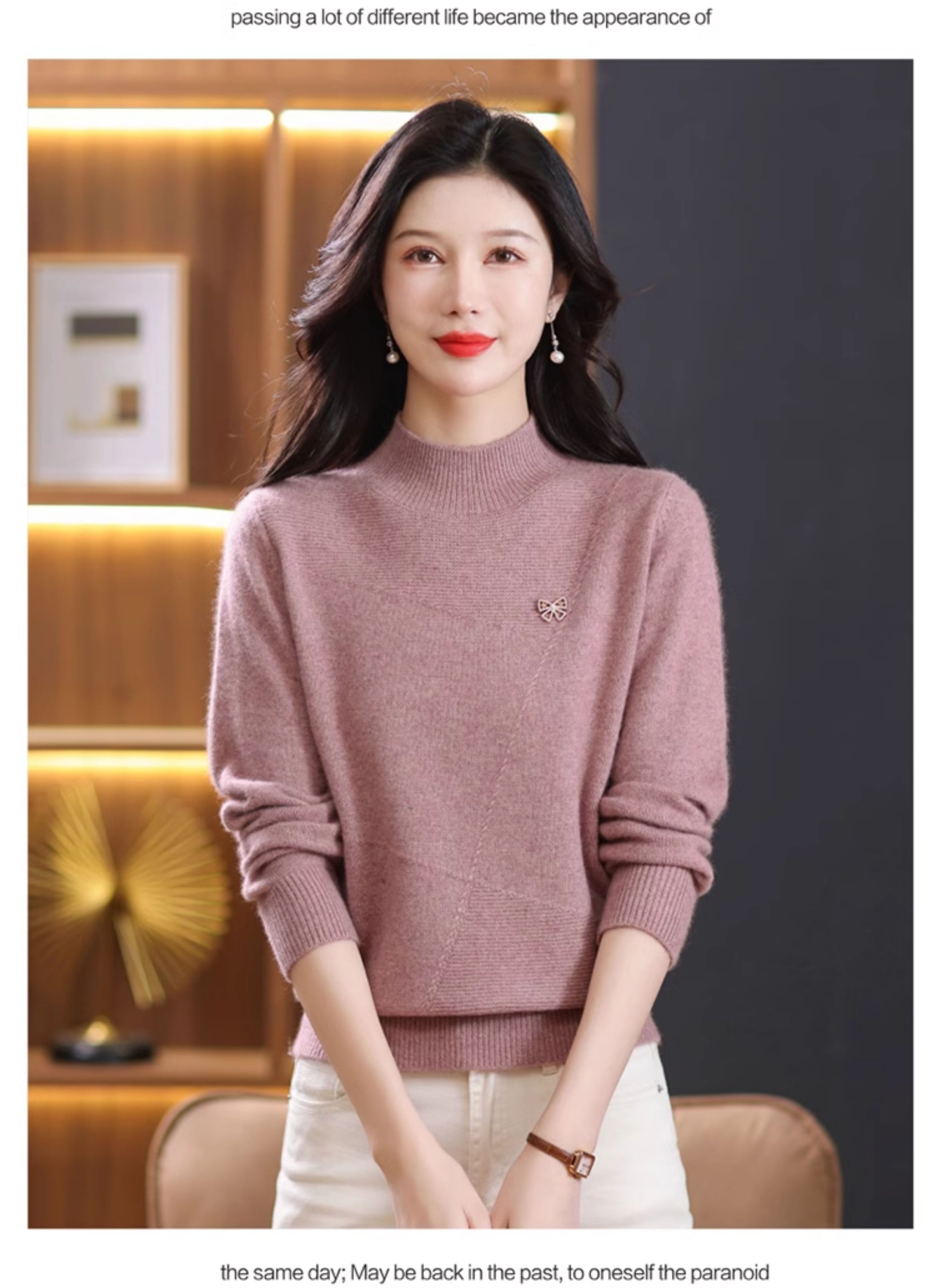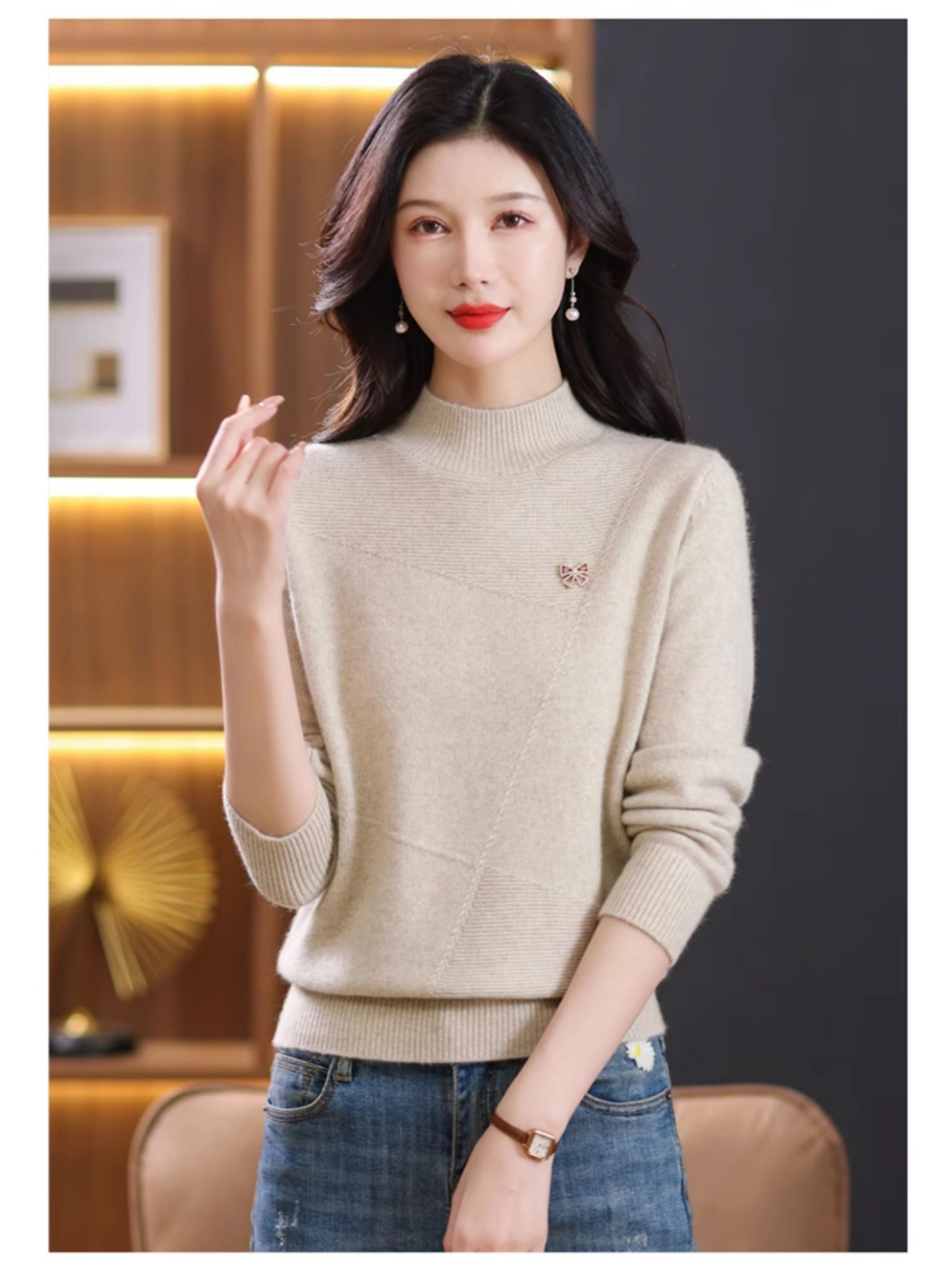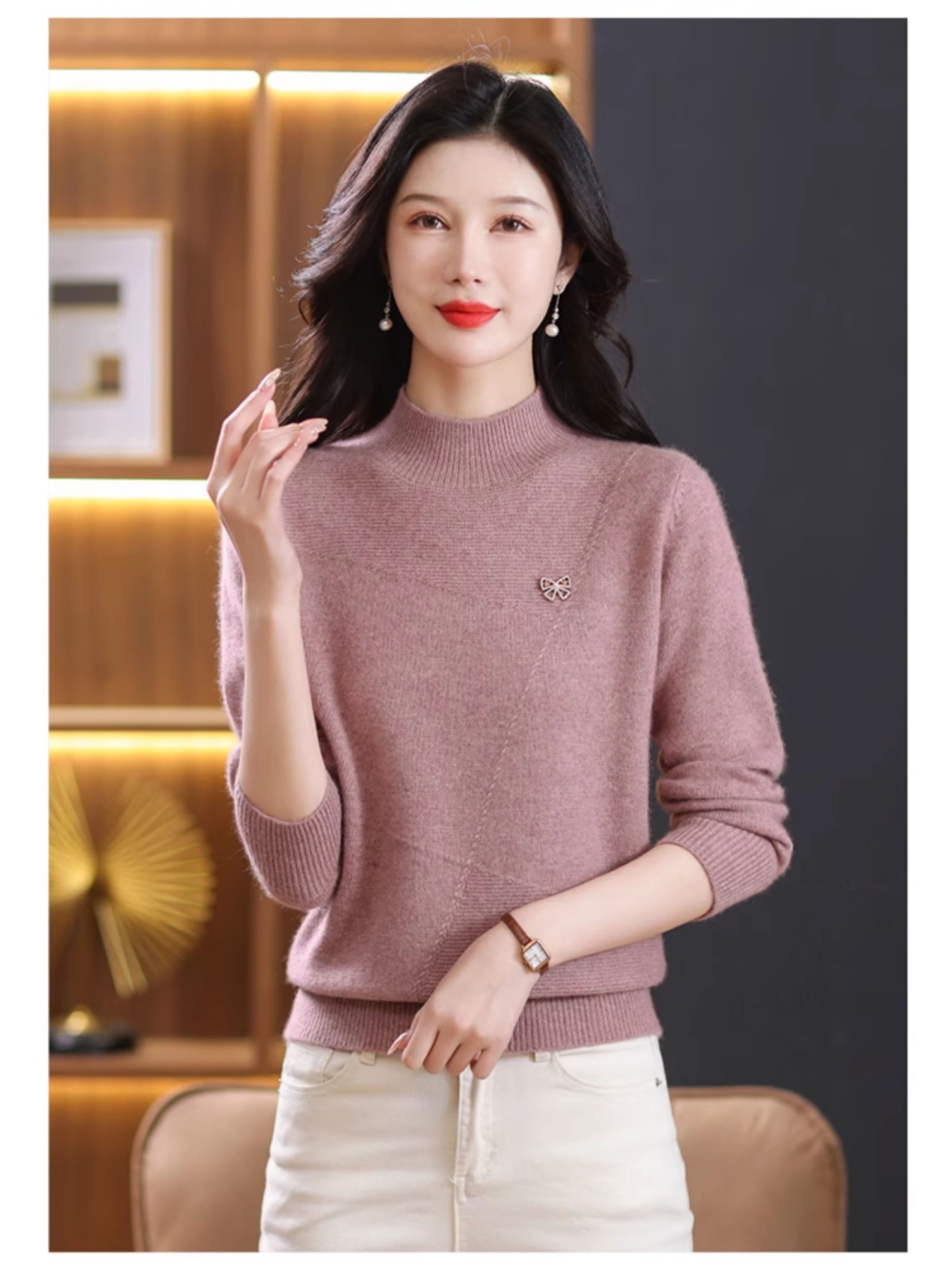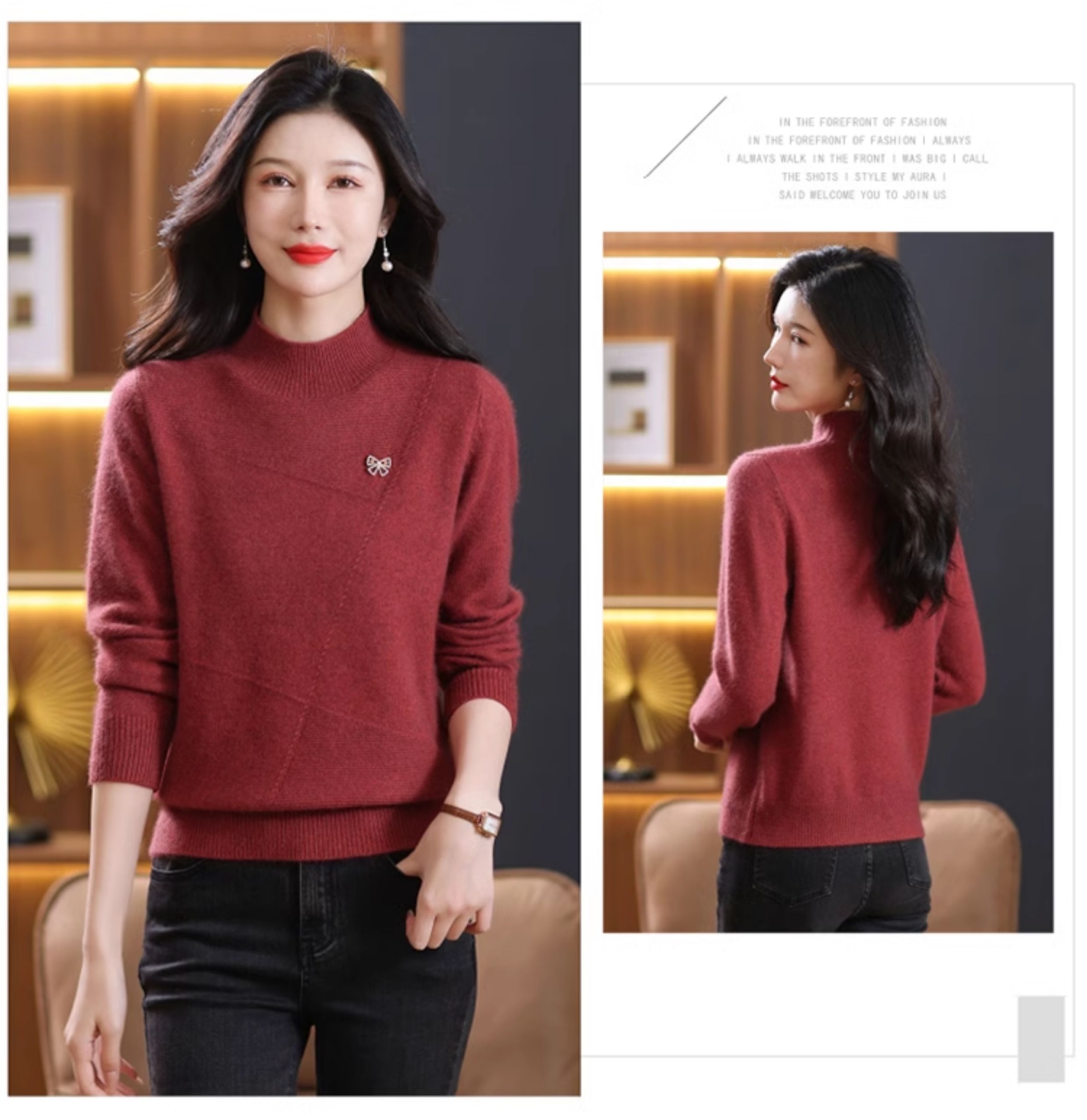 恒源祥半高領羊毛絨衫女2024秋冬新款短款套頭毛衣加厚內搭打底衫