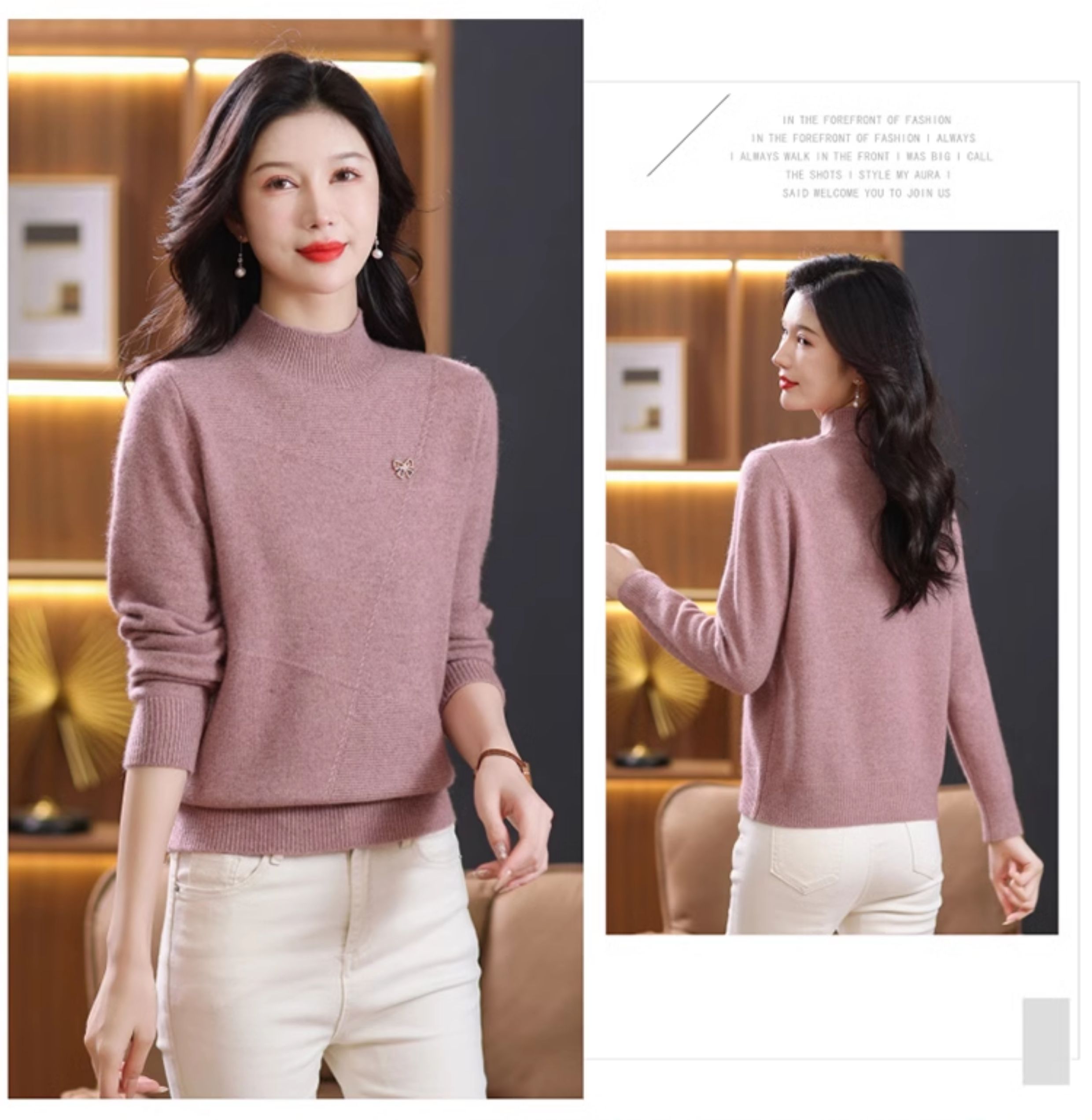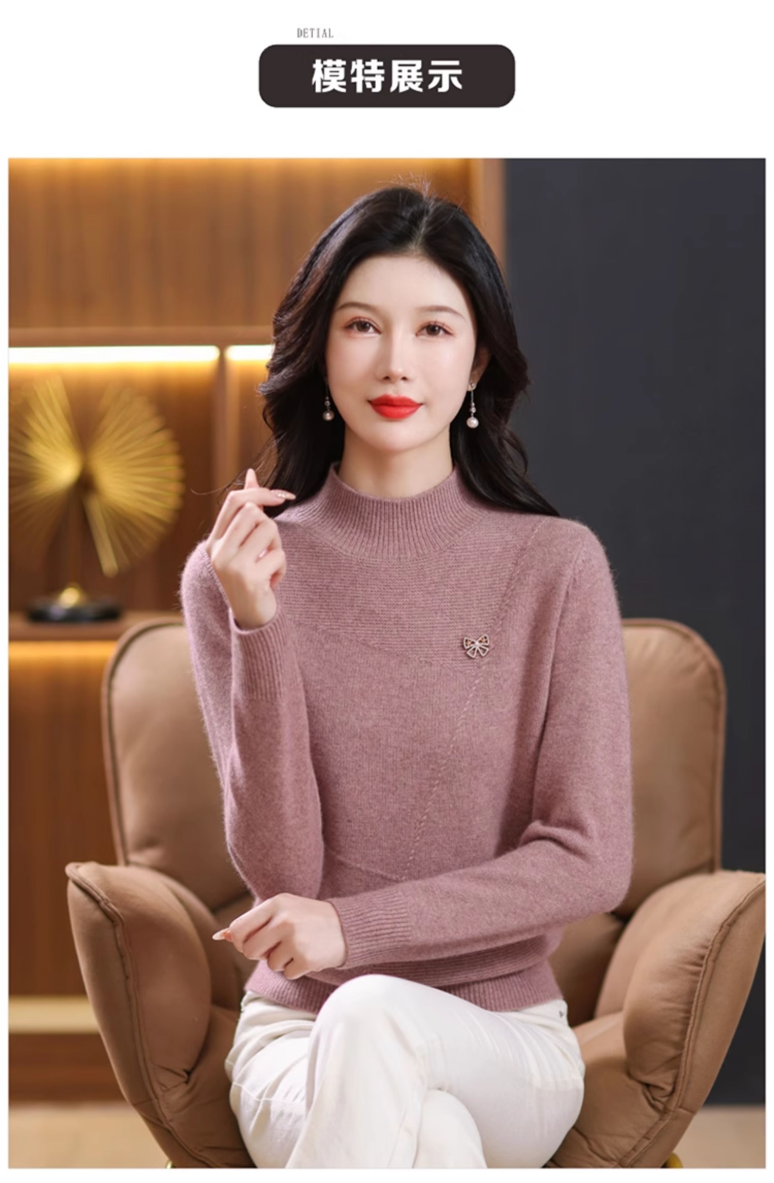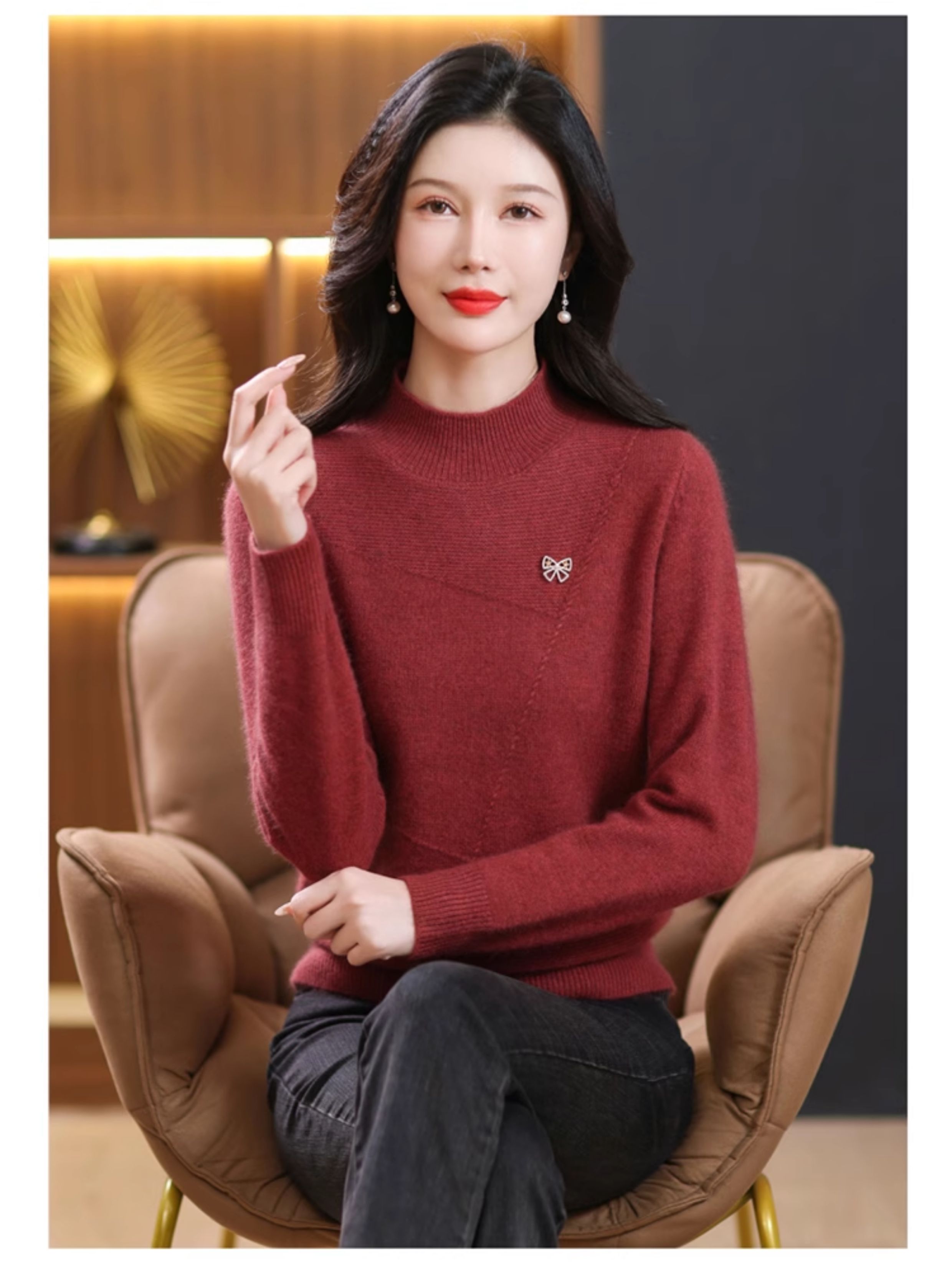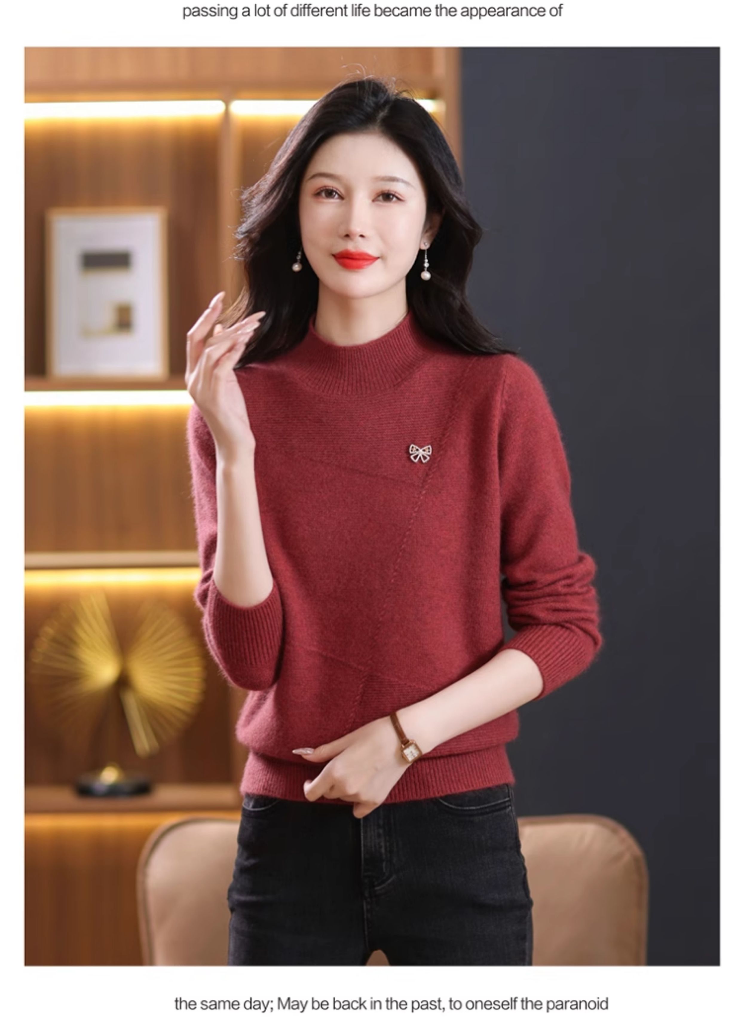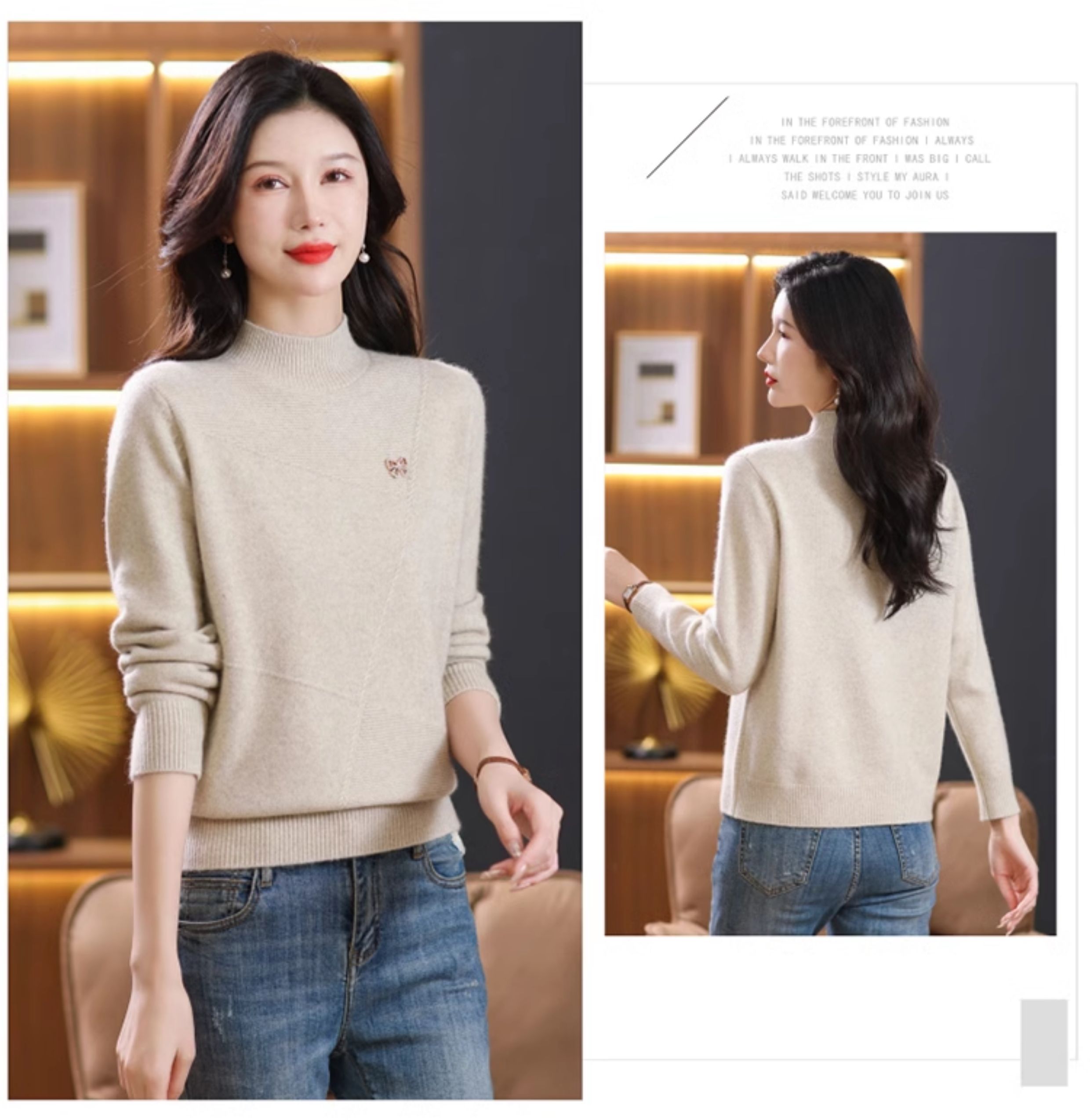恒源祥半高領羊毛絨衫女2024秋冬新款短款套頭毛衣加厚內搭打底衫