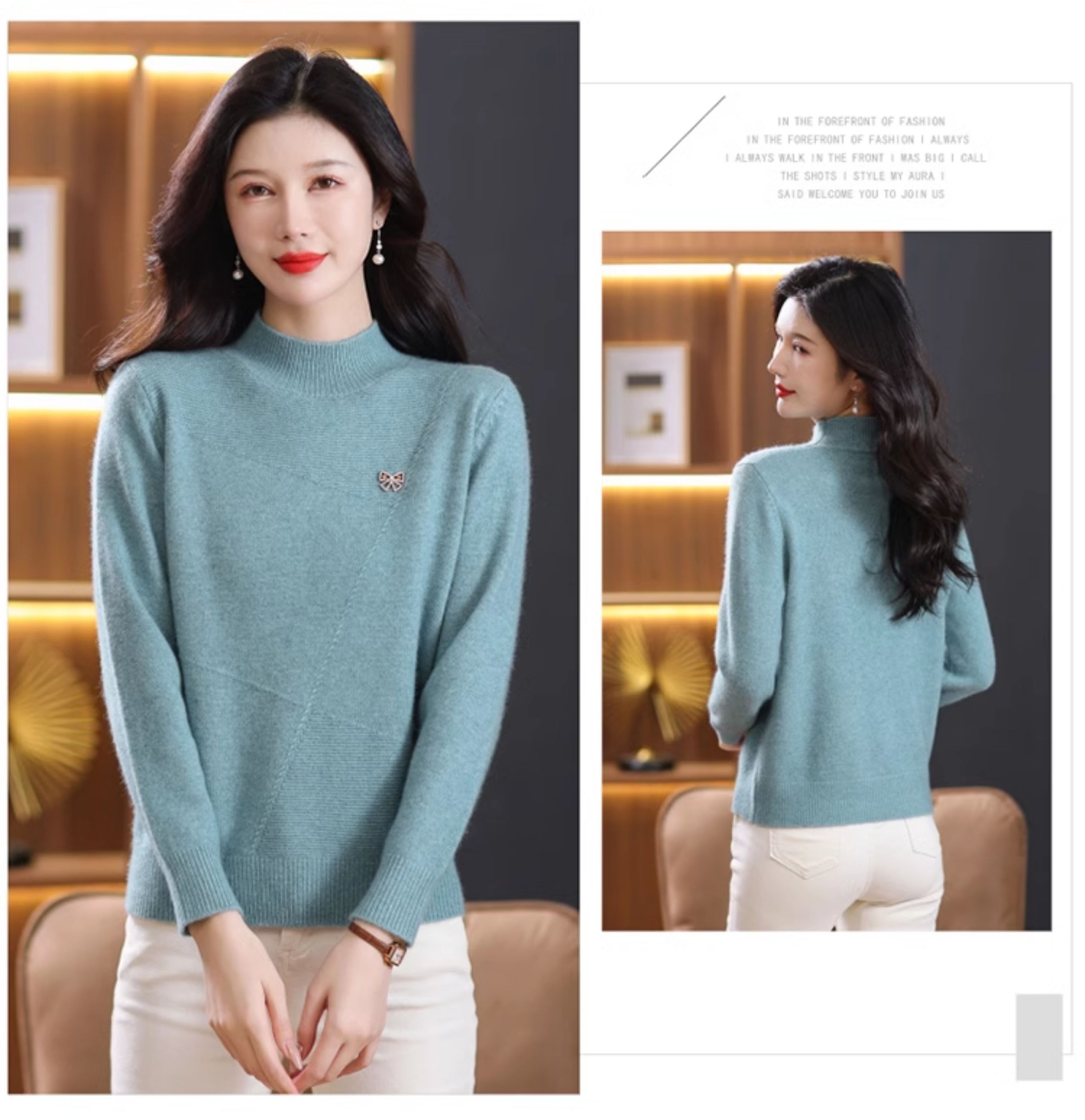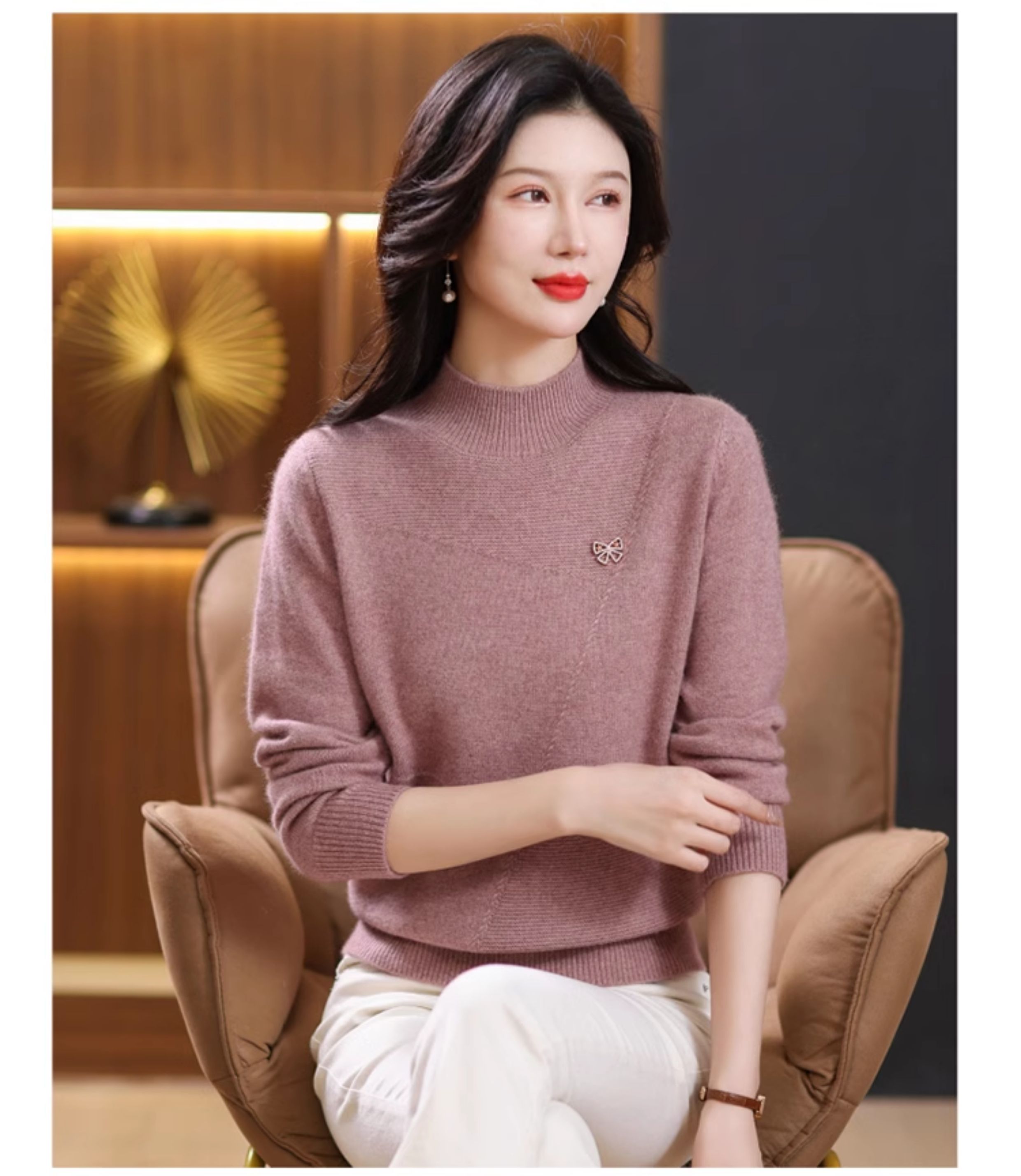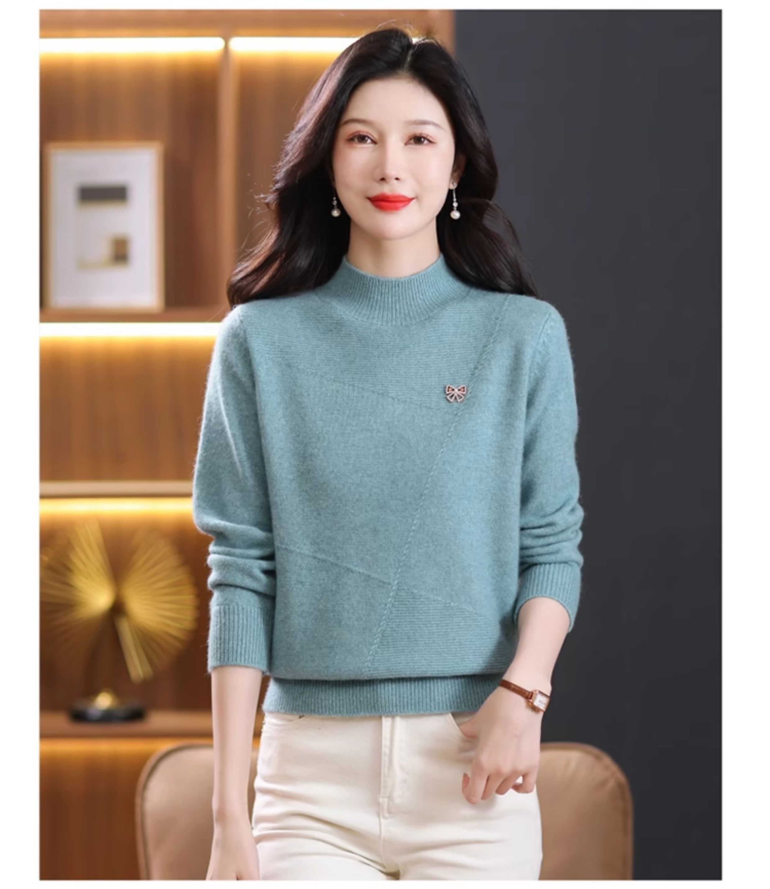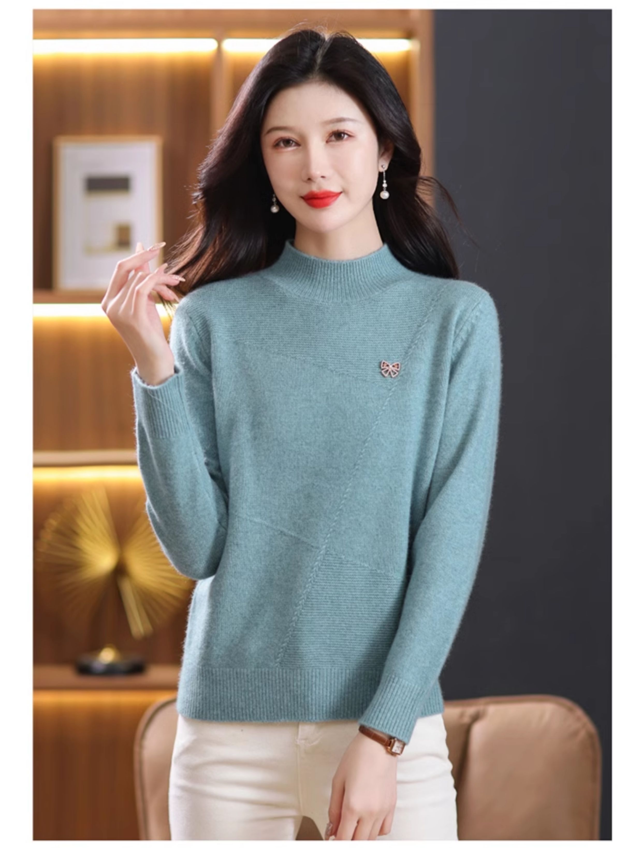 恒源祥半高領羊毛絨衫女2024秋冬新款短款套頭毛衣加厚內搭打底衫