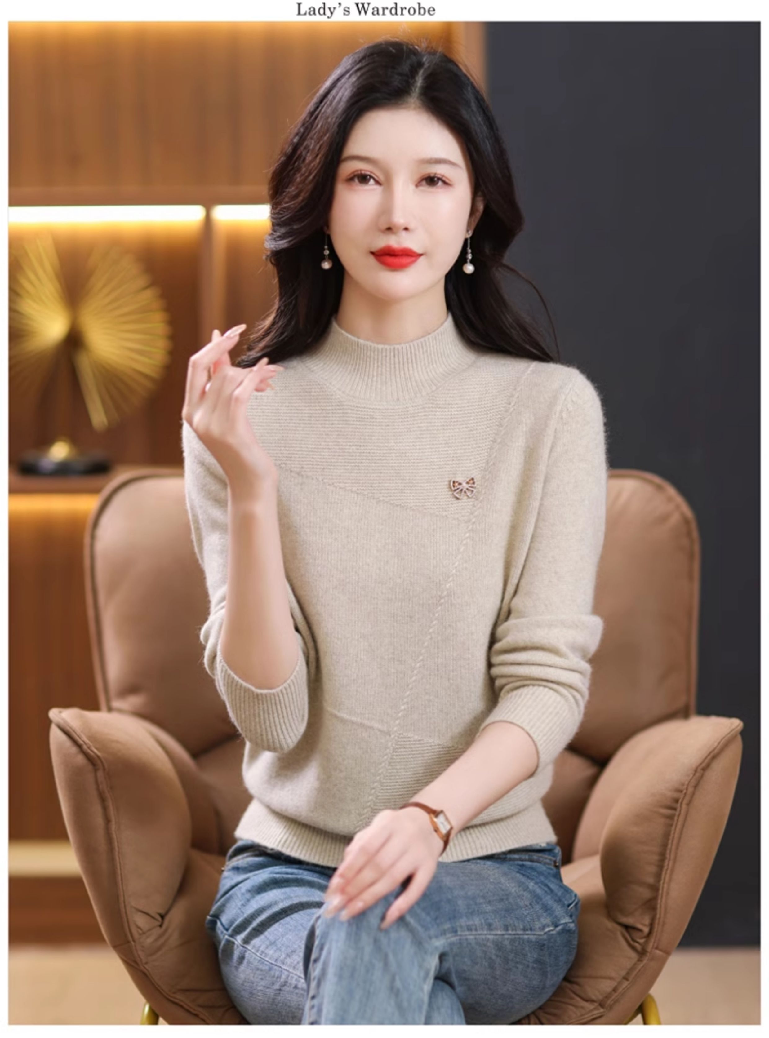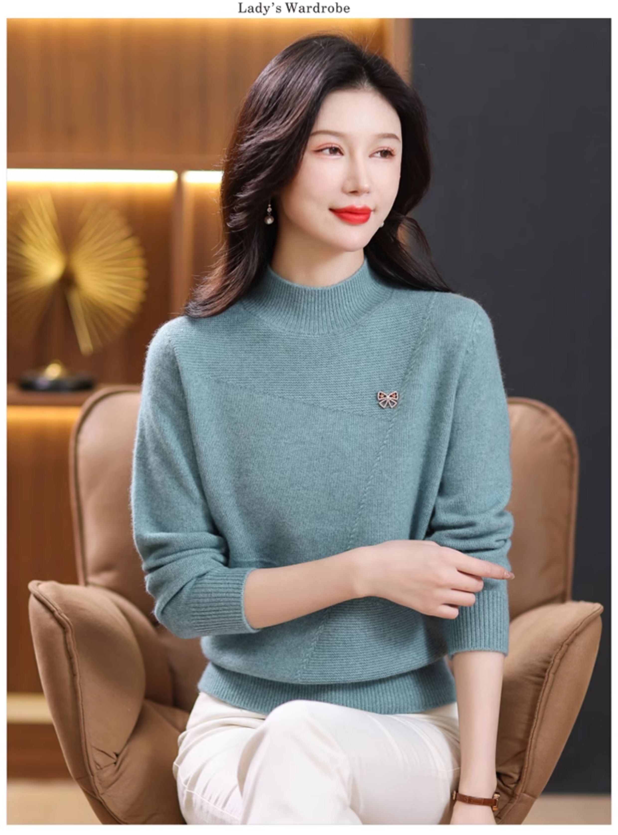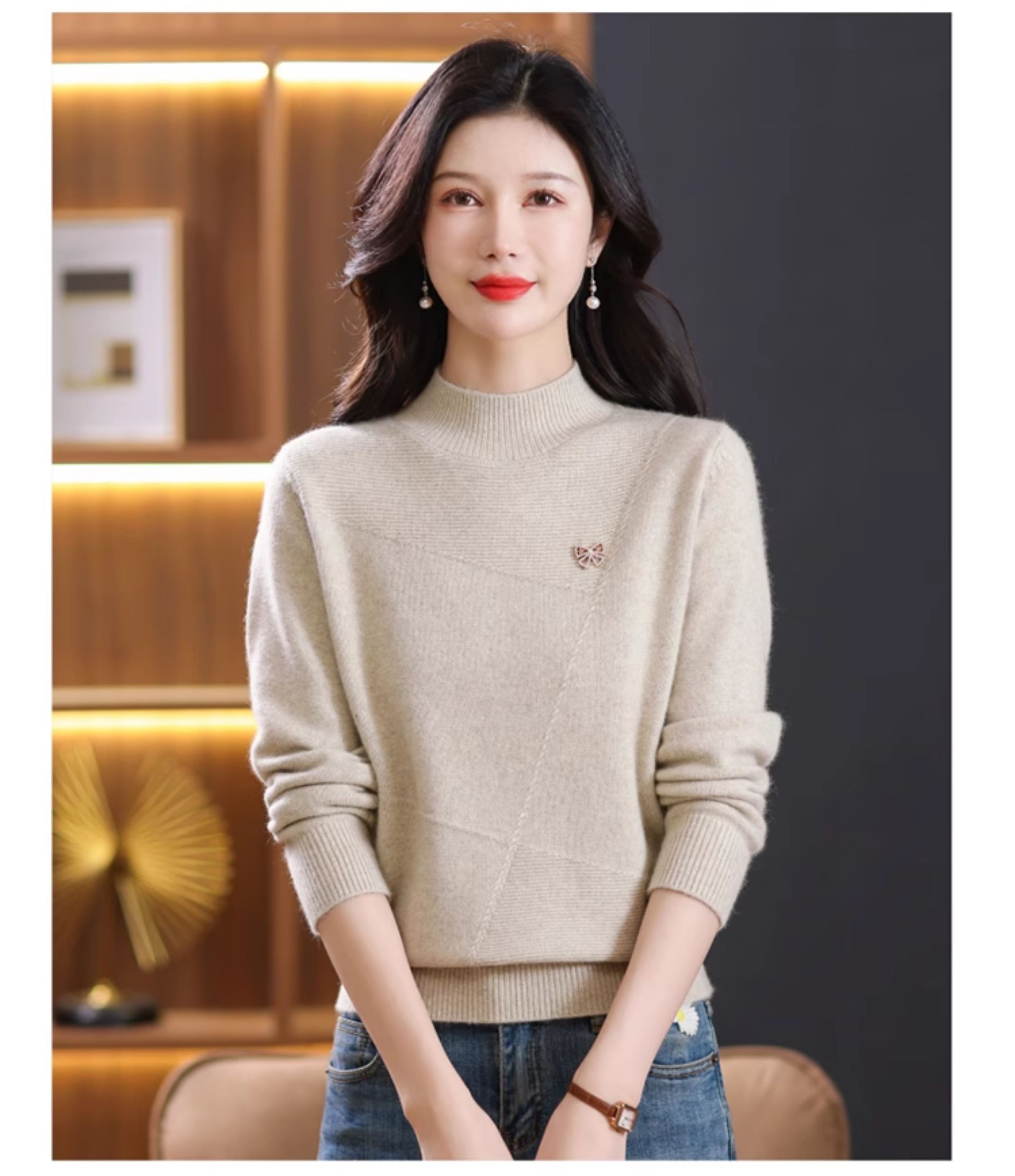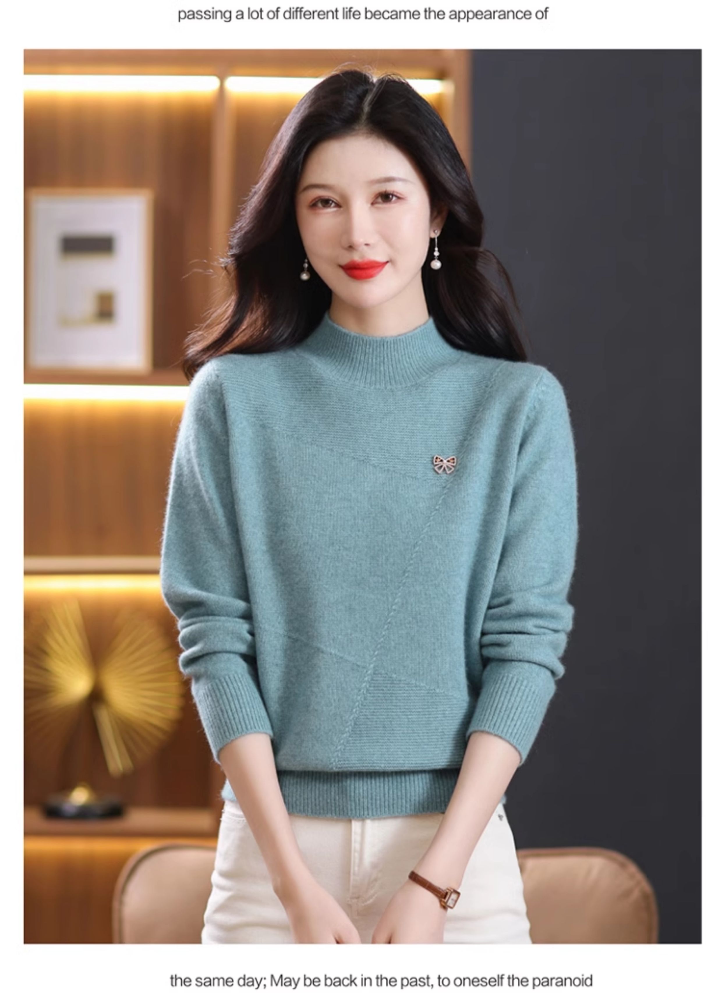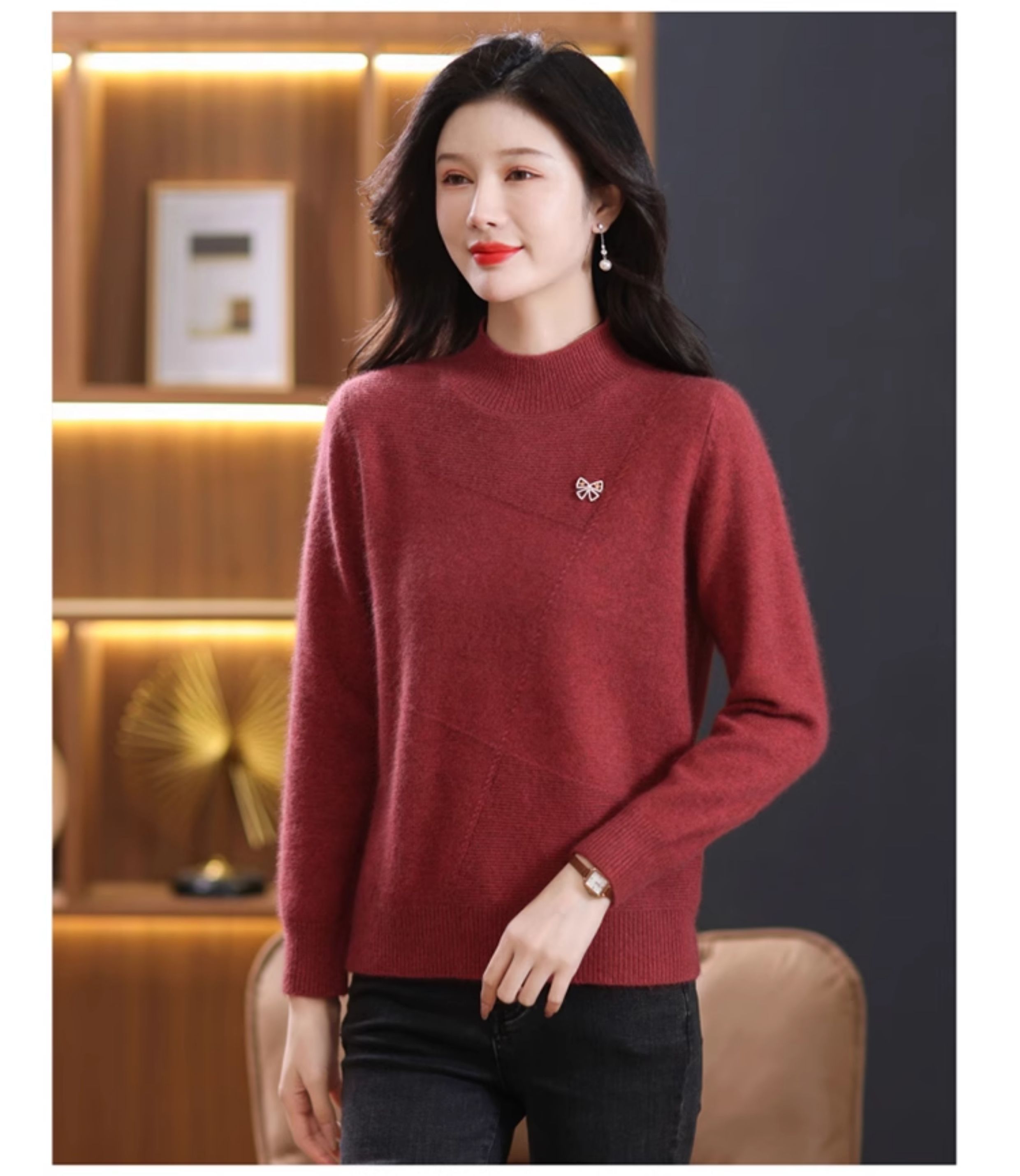 恒源祥半高領羊毛絨衫女2024秋冬新款短款套頭毛衣加厚內搭打底衫