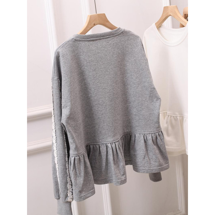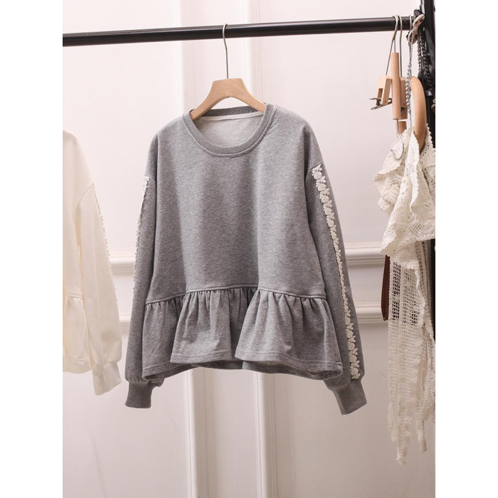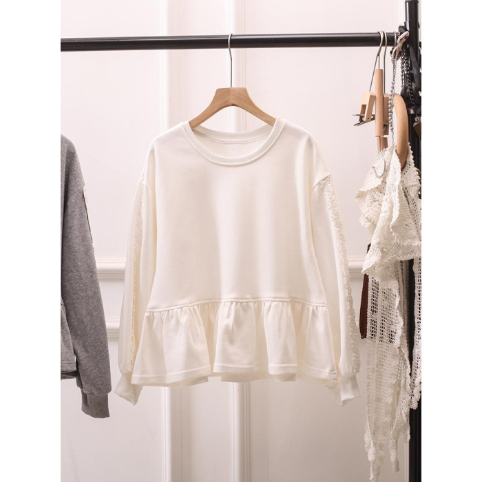 日系蕾絲花邊衛衣女復古韓版慵懶純色百搭娃娃衫減齡內搭打底衫胖