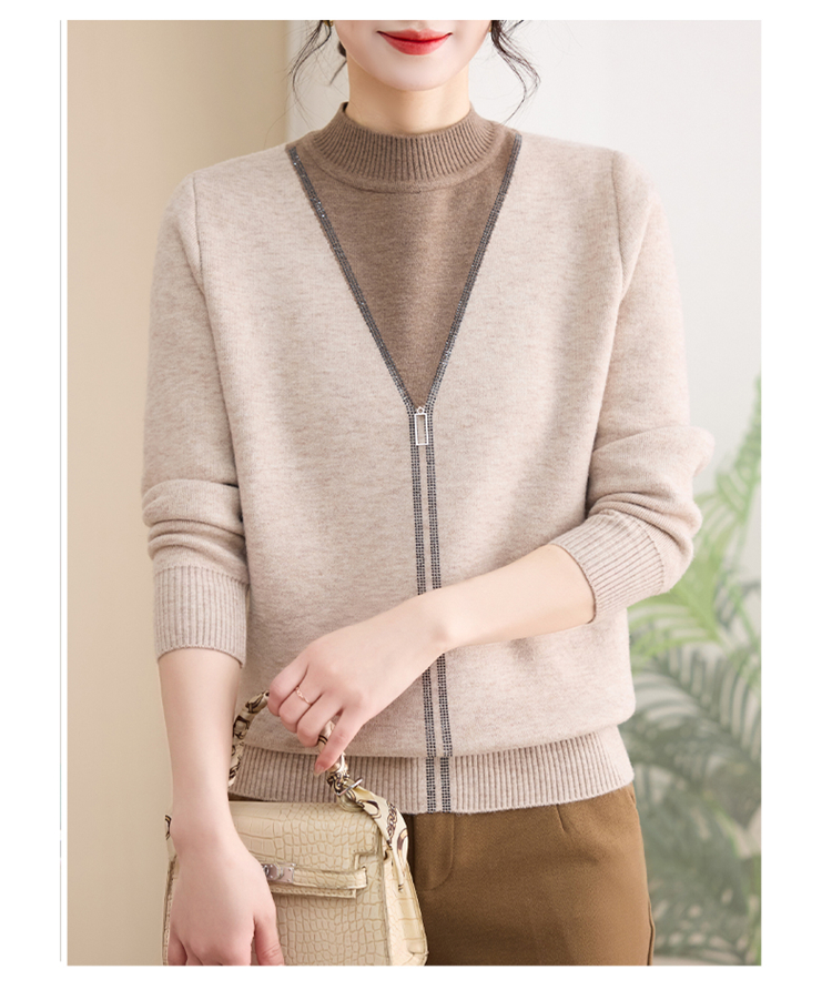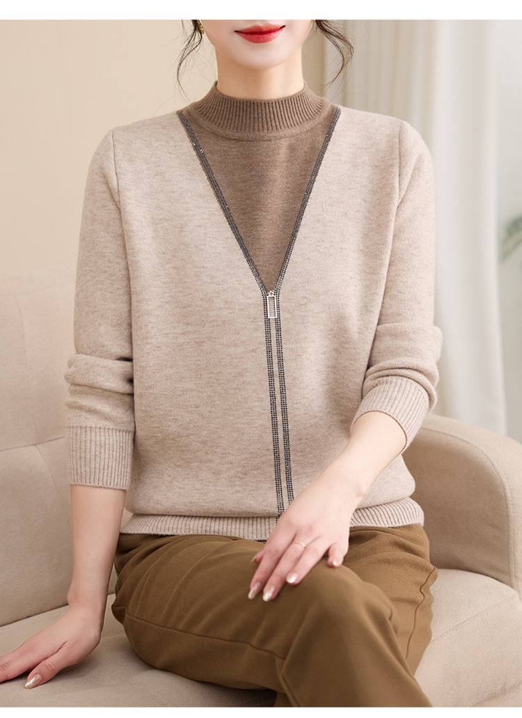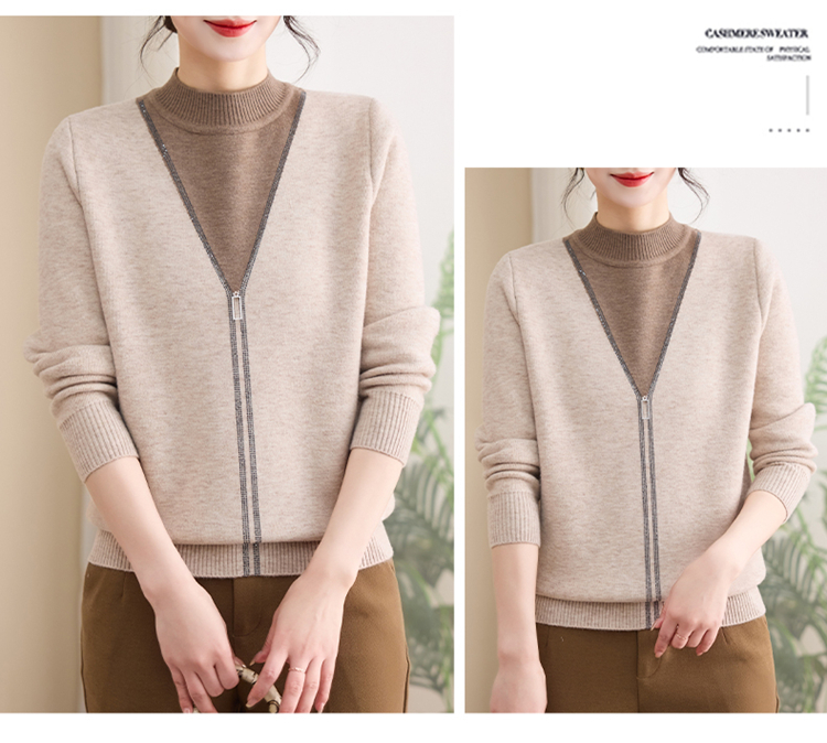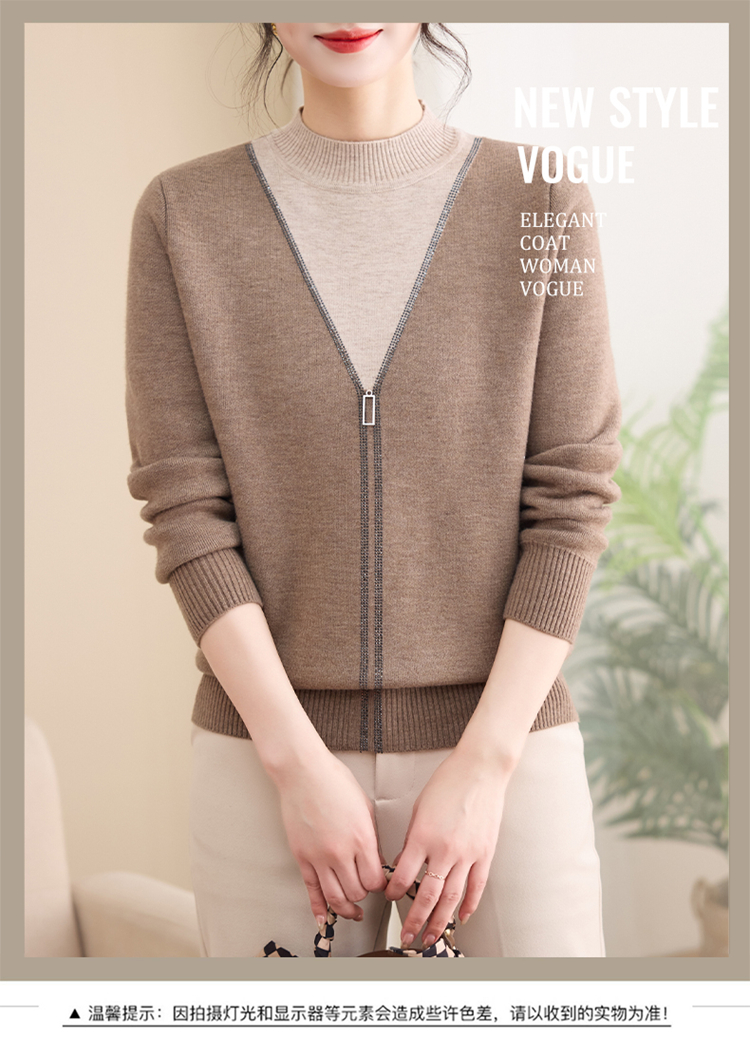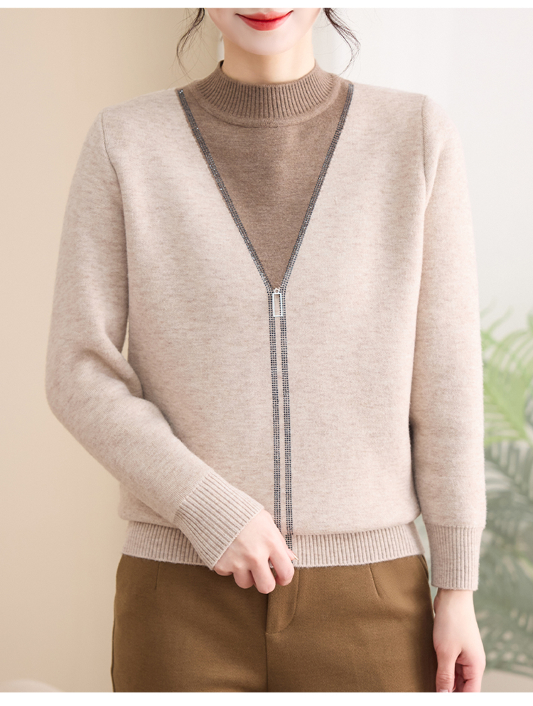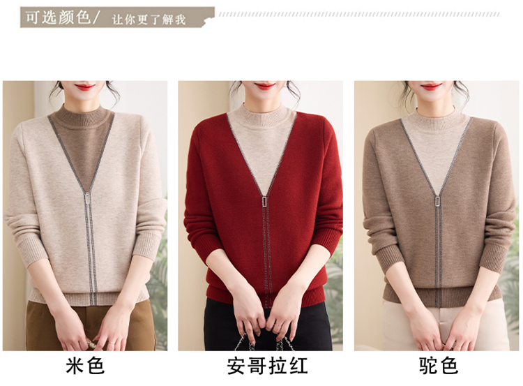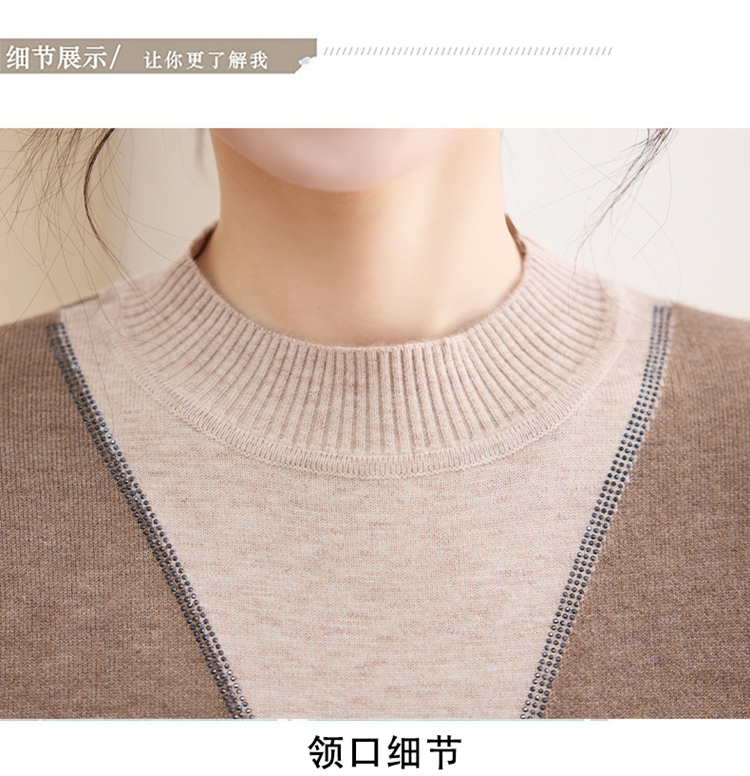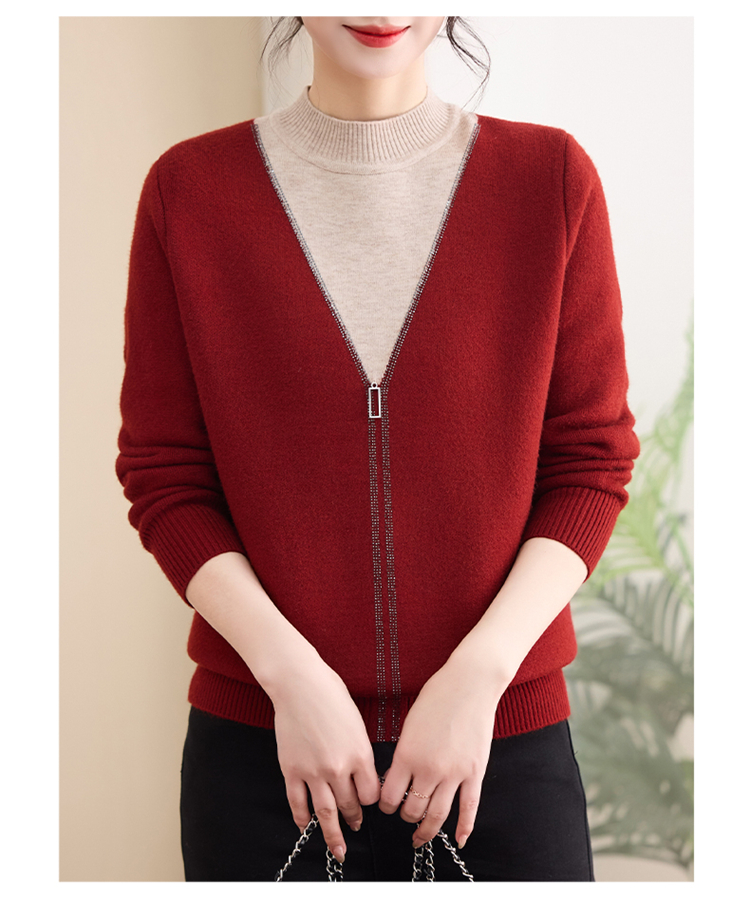 本命年媽媽冬裝假兩件紅色毛衣一體絨針織打底衫新款加絨加厚上衣