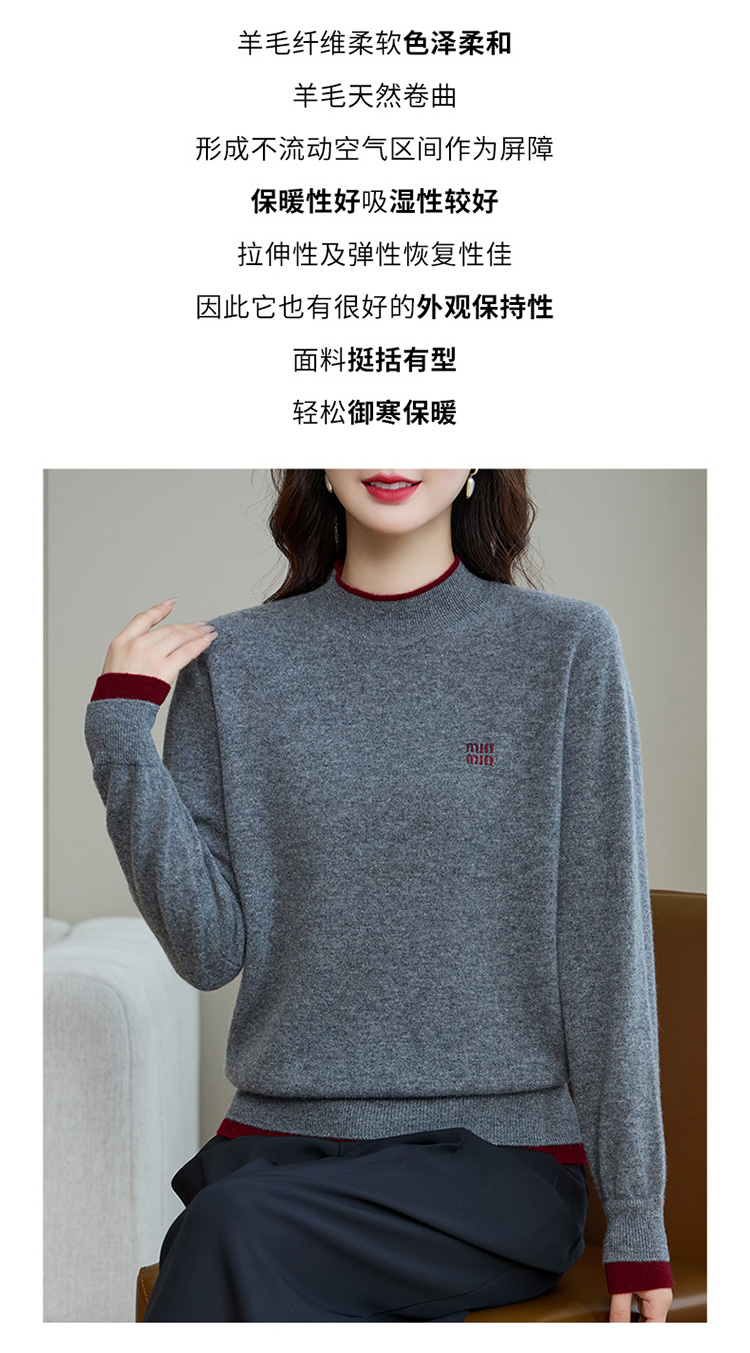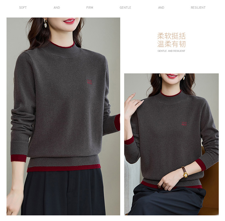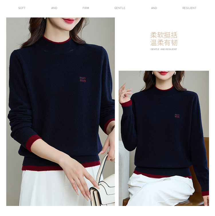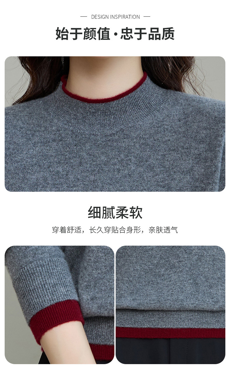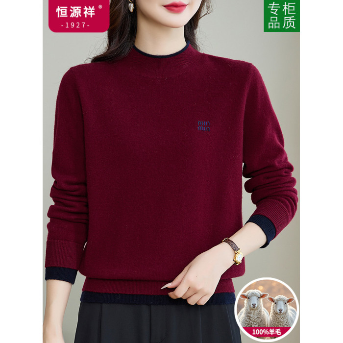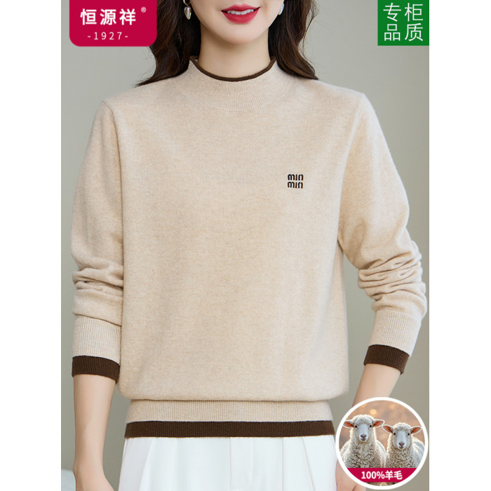 恒源祥高級半高領羊毛衫女100純羊毛新款秋冬拼色針織軟糯打底衫