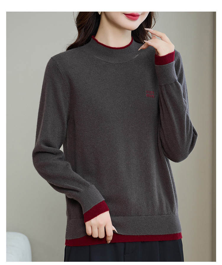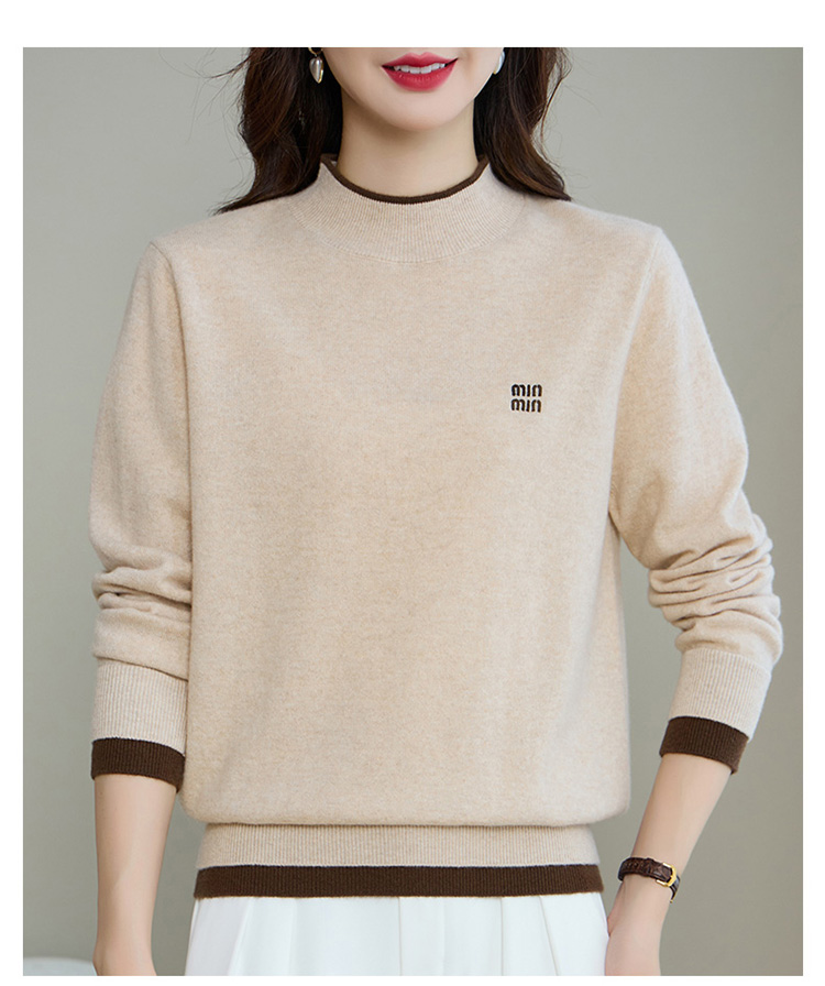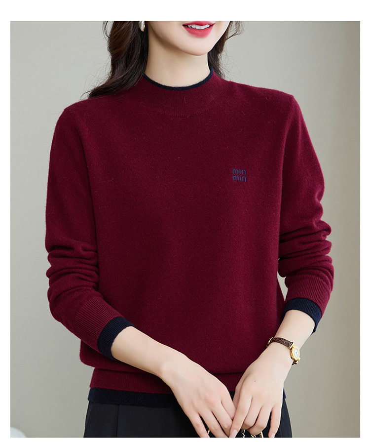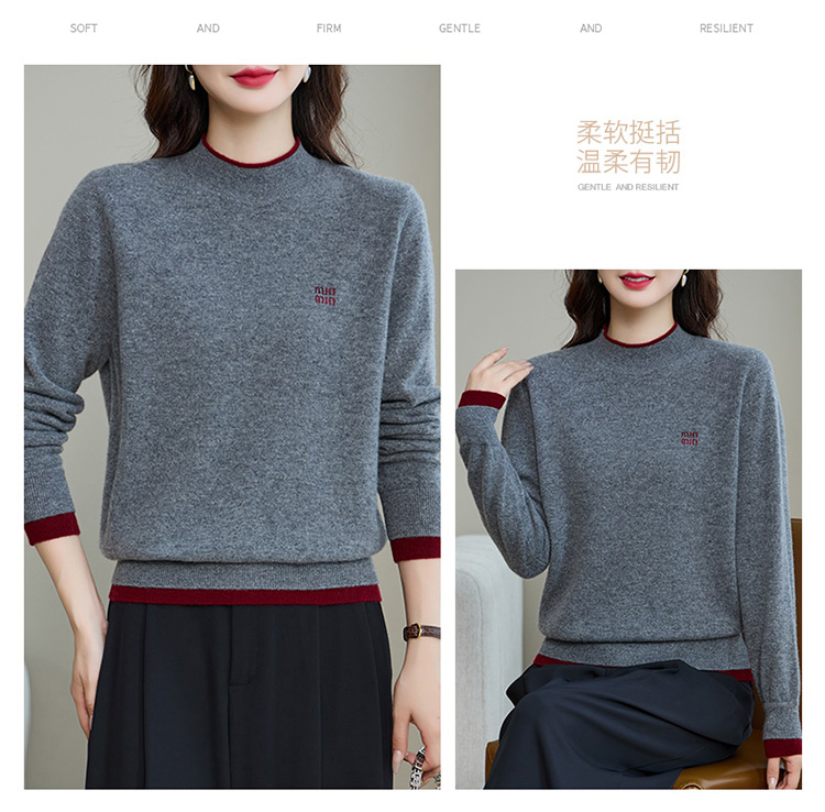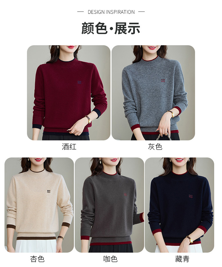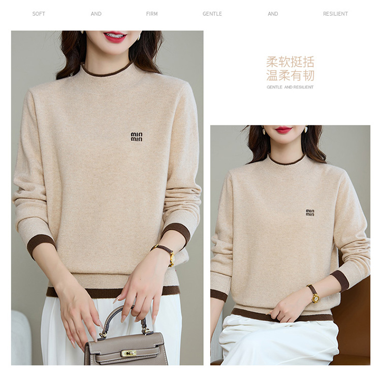 恒源祥高級半高領羊毛衫女100純羊毛新款秋冬拼色針織軟糯打底衫