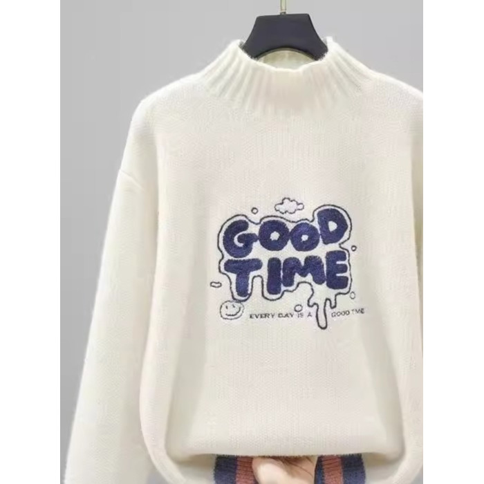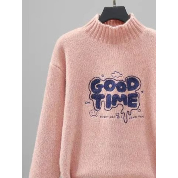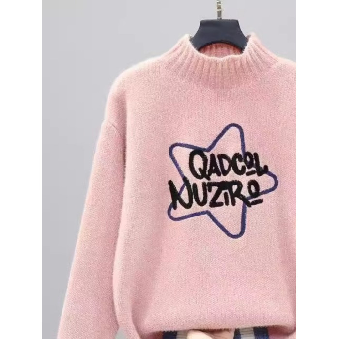 雪尼爾半高領毛衣女春秋冬季初中高中學生大童加絨加厚針織打底衫