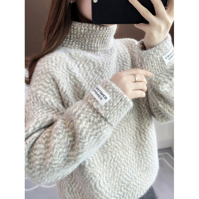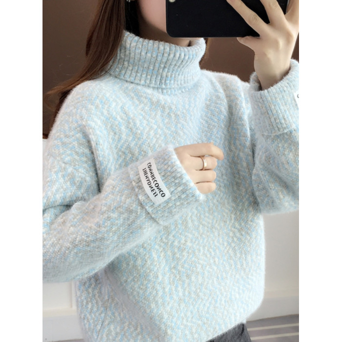 雪尼爾高領毛衣女秋冬季寬松高中初中學生大童女孩加絨加厚打底衫