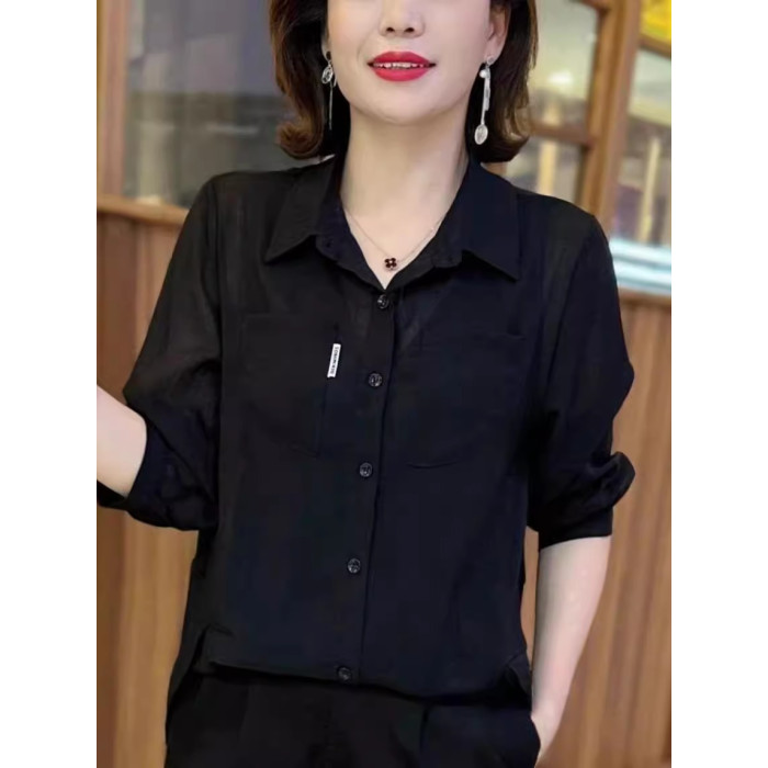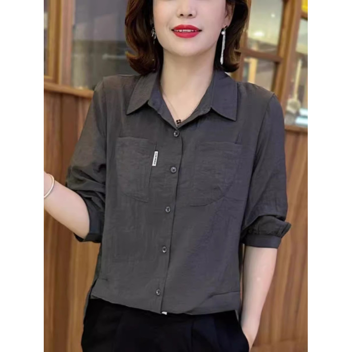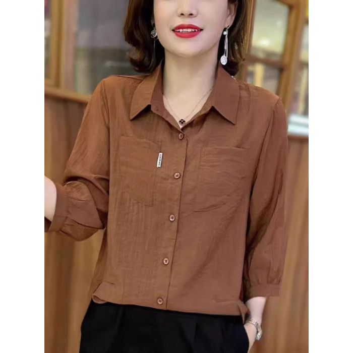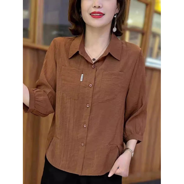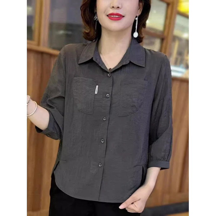夏季薄款天絲棉半袖襯衫女2025新款中年媽媽裝POLO領純色休閒上衣