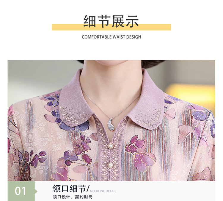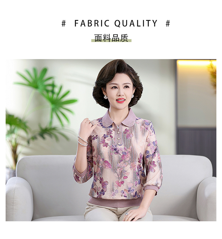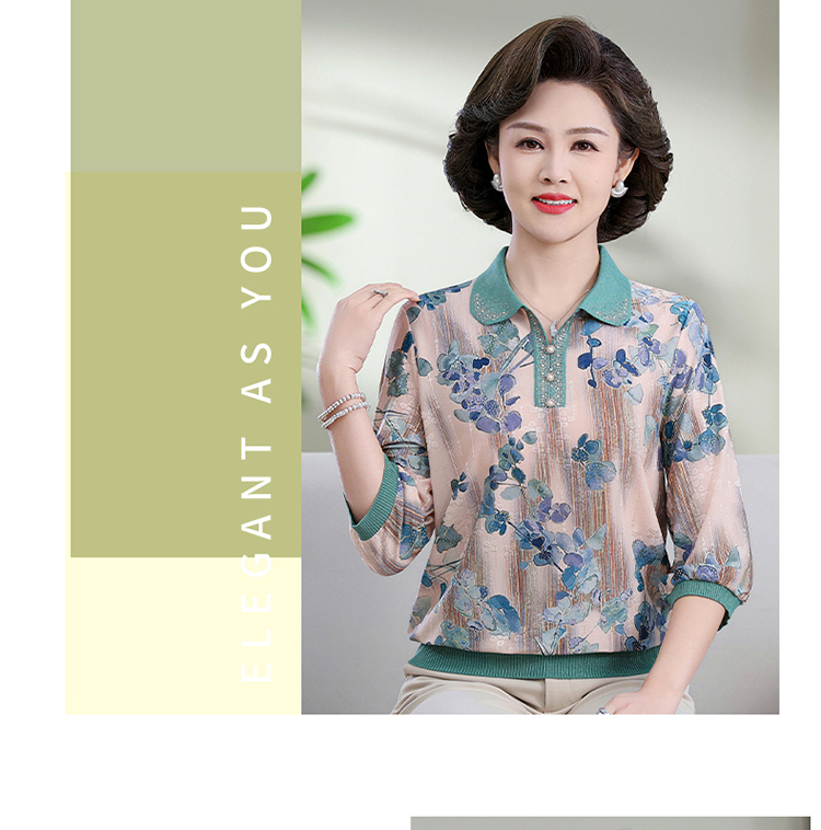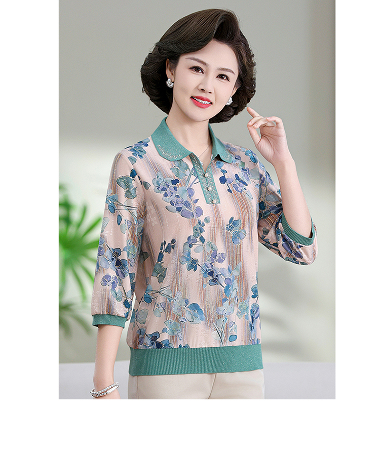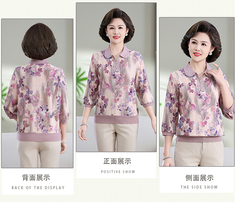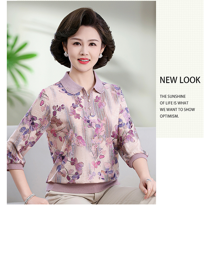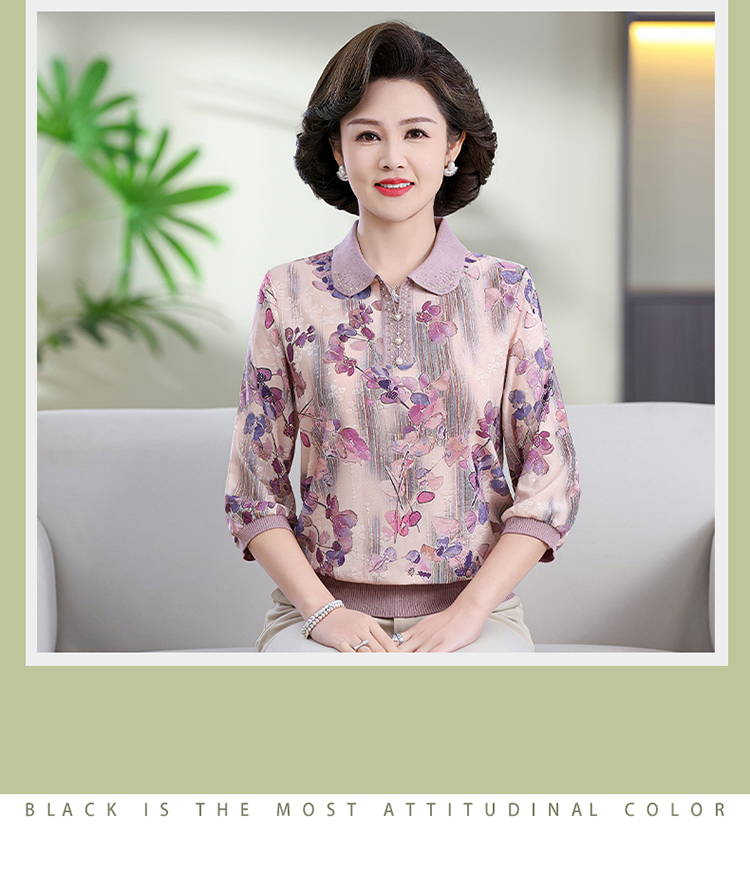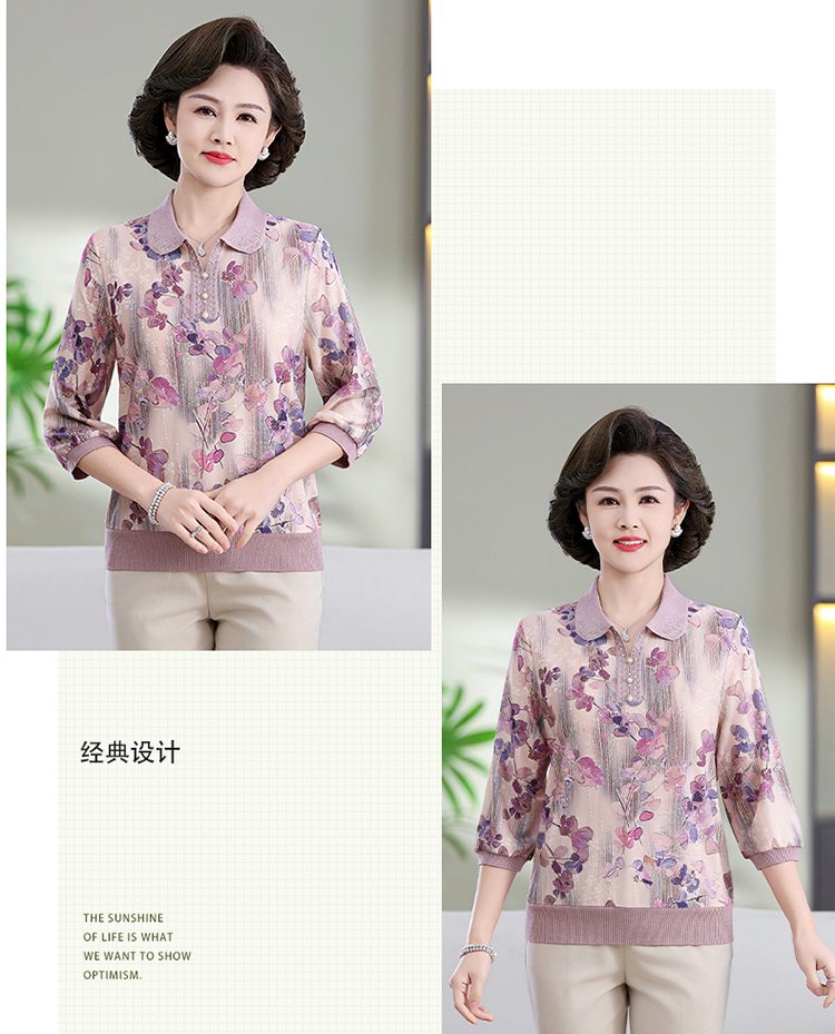 中老年媽媽裝翻領針織衫洋氣花色薄款打底衫春秋奶奶裝套頭小衫女