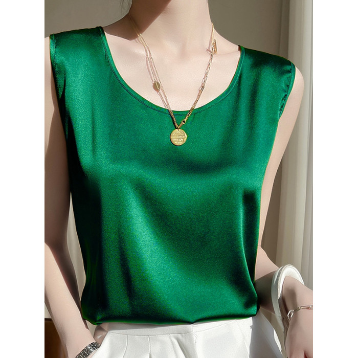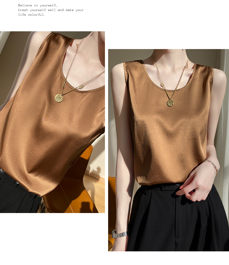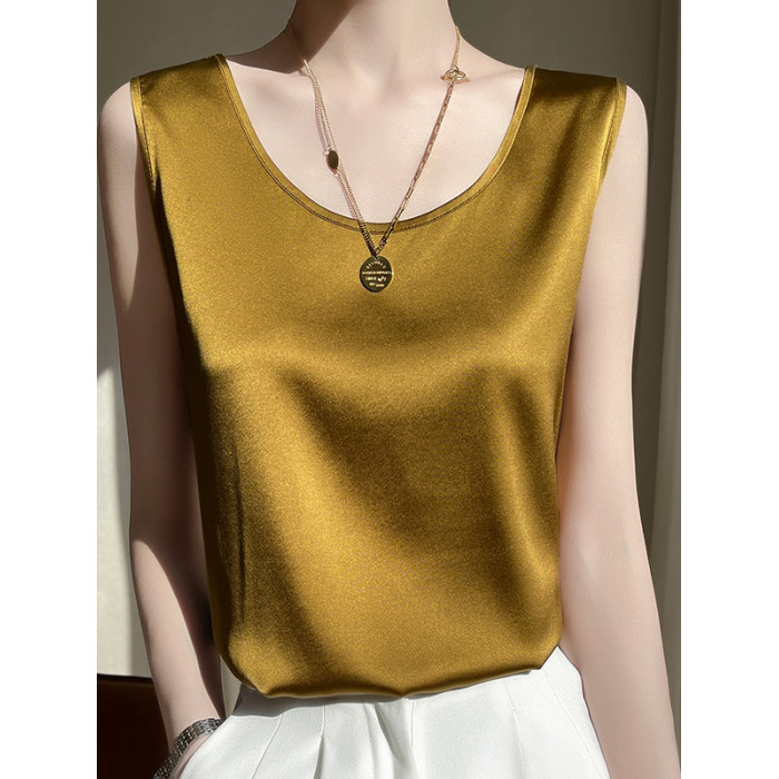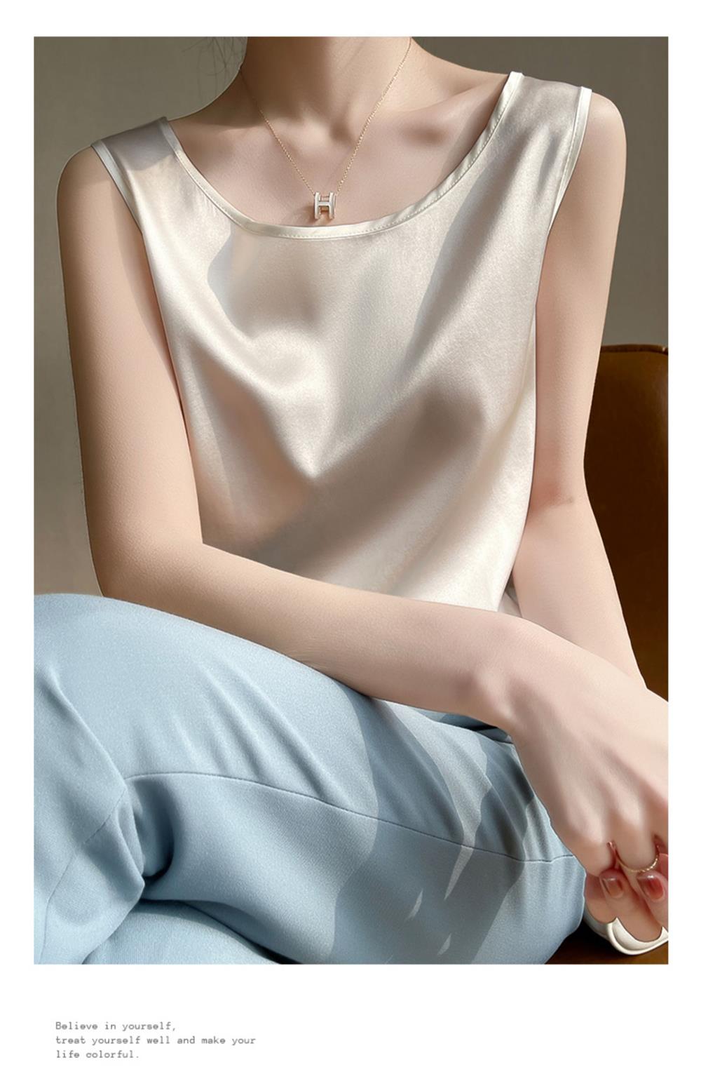 2025夏季高階重磅吊帶背心女高級感緞面冰絲無袖打底衫西裝內搭