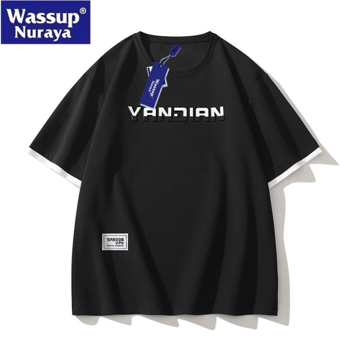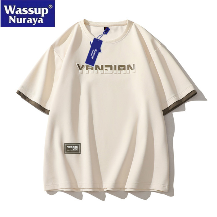 WASSUP Nuraya潮牌假兩件短袖T恤男夏季寬松圓領情侶半袖青年上衣