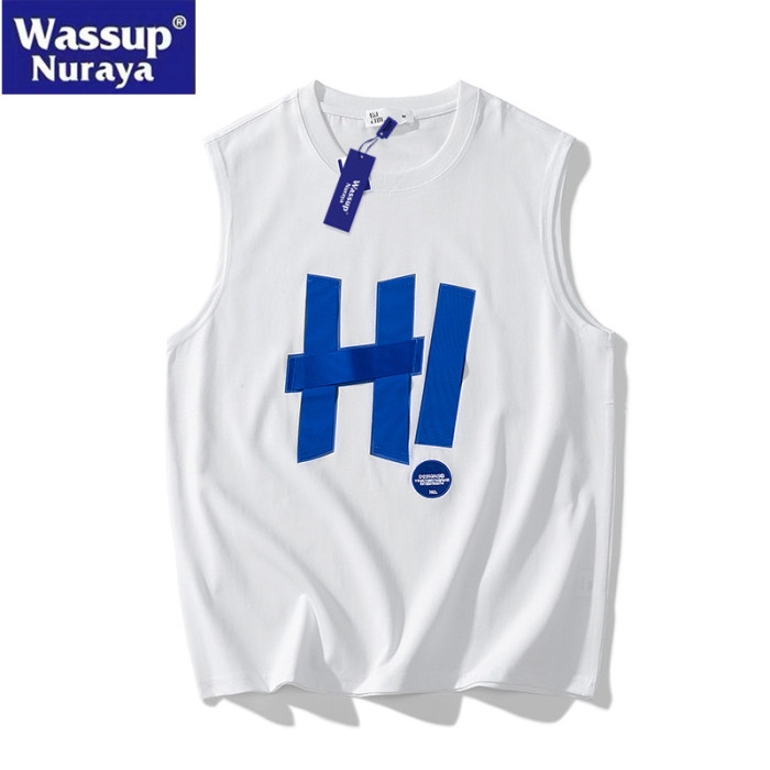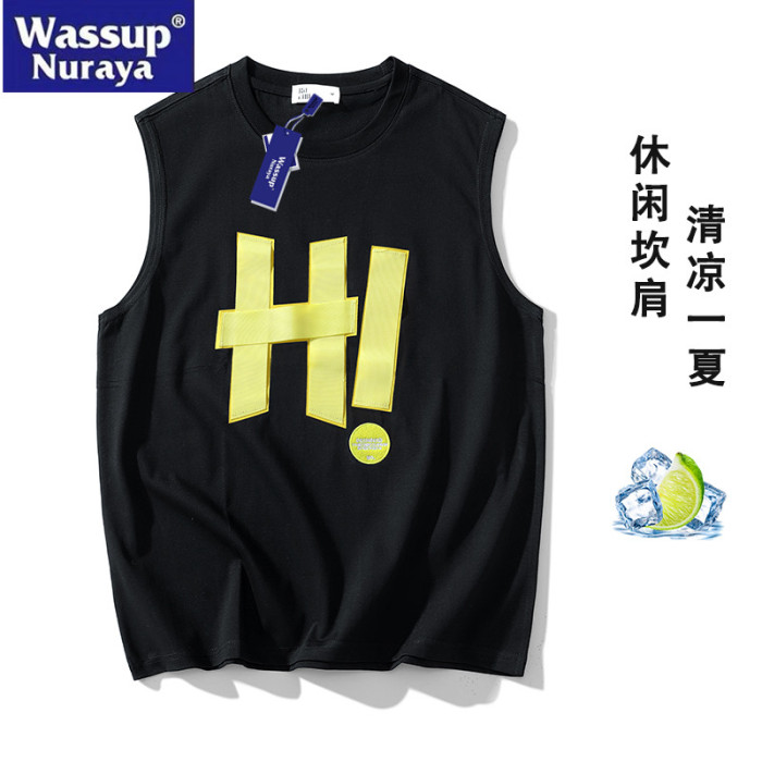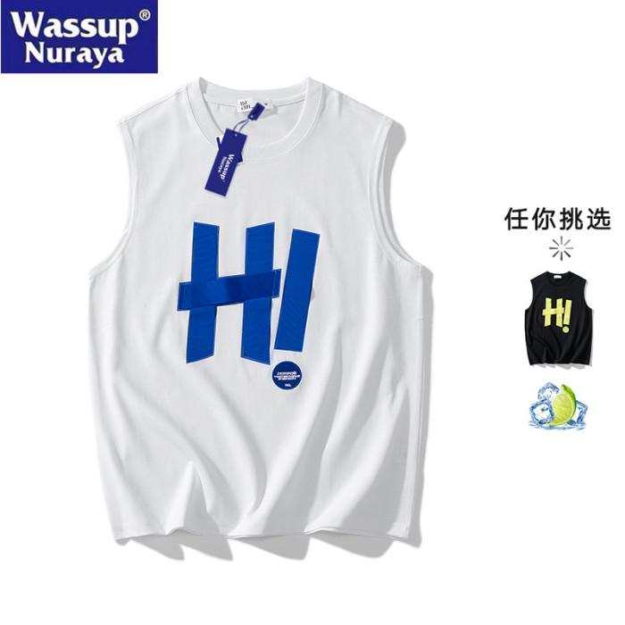 WASSUP Nuraya潮牌夏季休閒字母織帶冰絲背心男坎肩無袖運動透氣