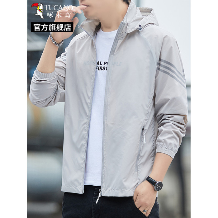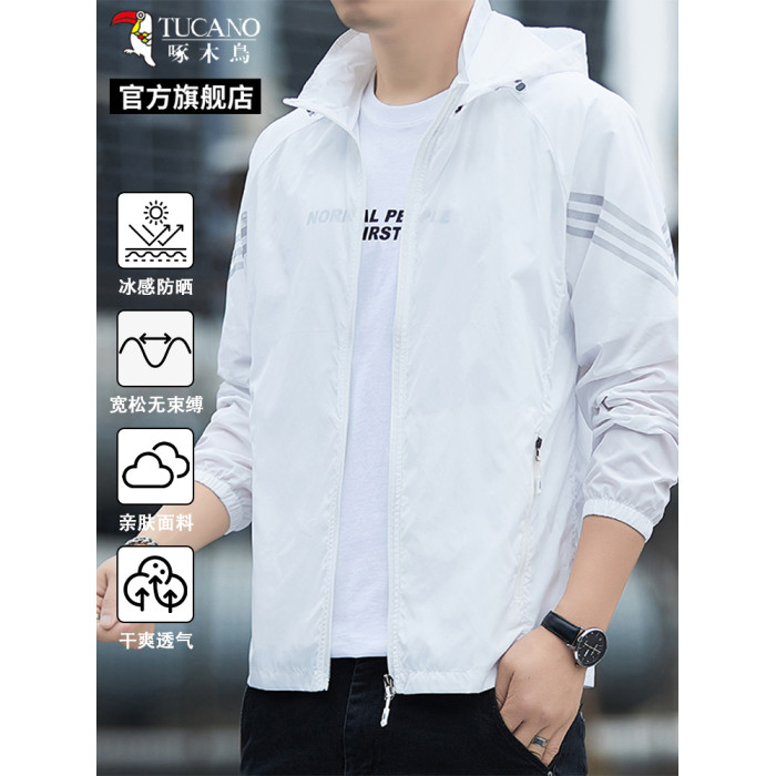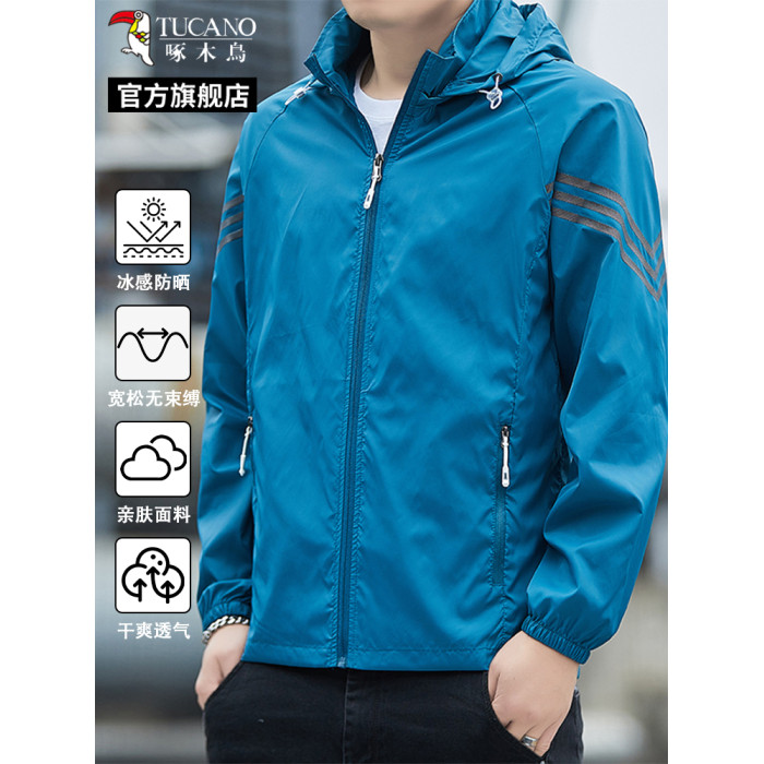啄木鳥2025夏季新款輕薄透氣冰絲防曬衣男士可脫卸連帽純色外套L