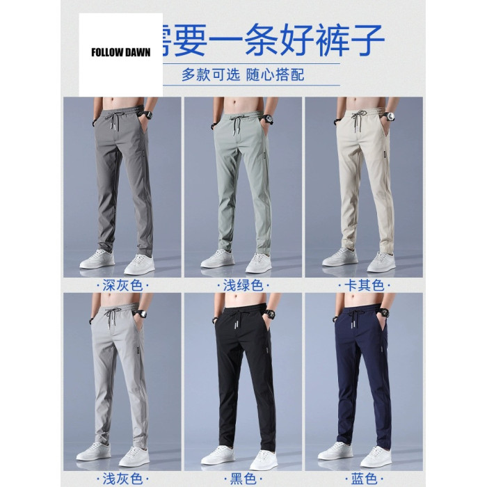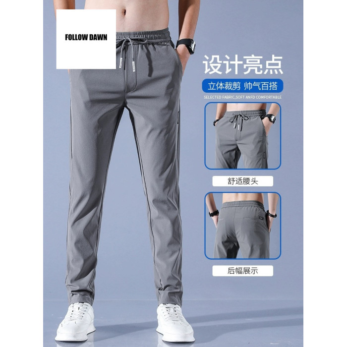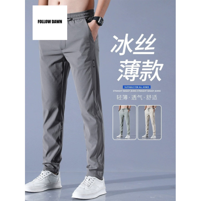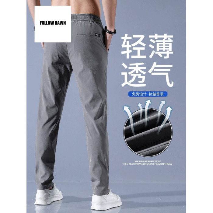 男士休閒褲夏天修身直筒冰絲男褲夏季薄款速乾運動褲子男